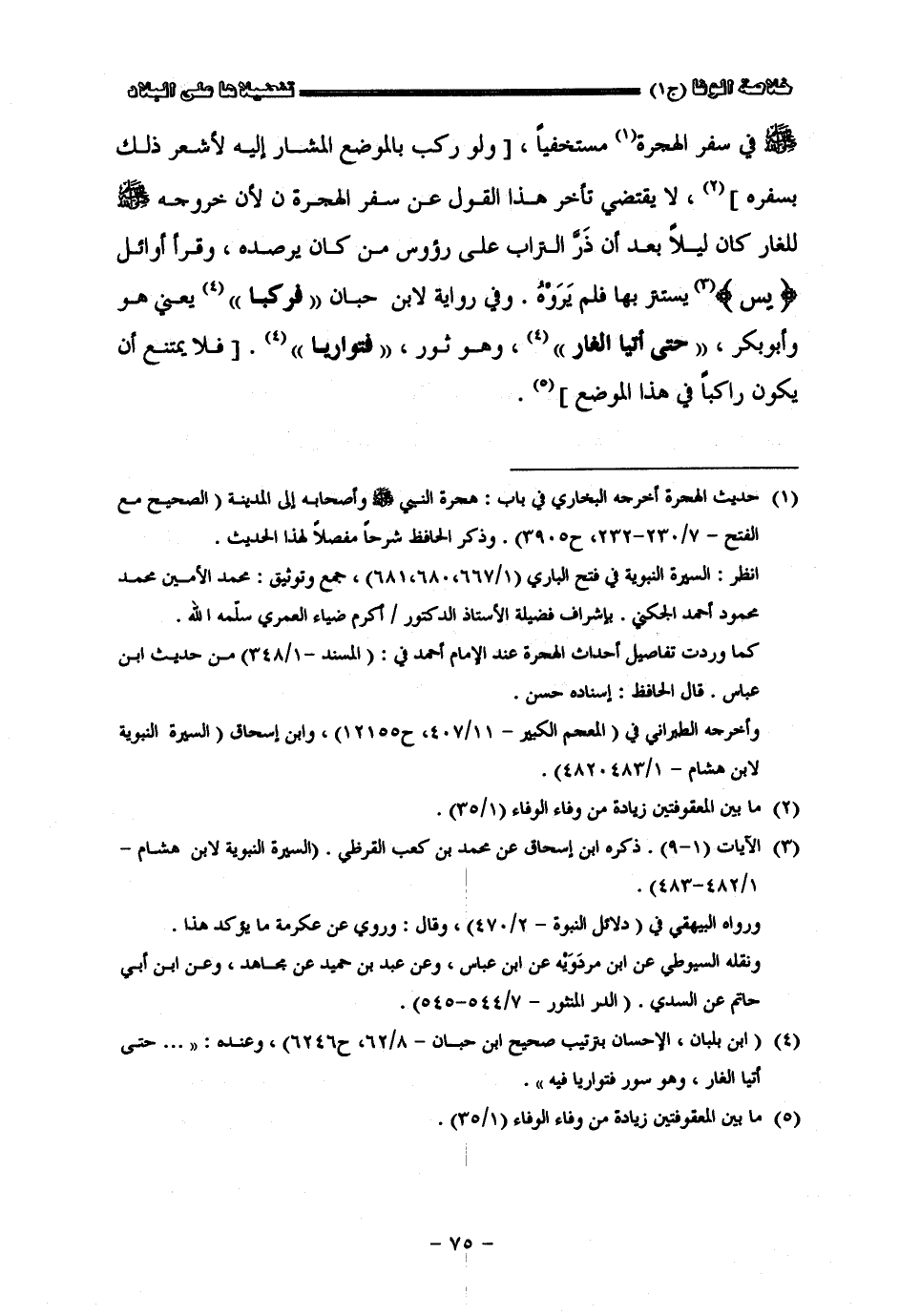 صلى الله عليه وسلم في سفر الهجرة مستخفيا لا يقتضي تأخر هذا القول عن سفر الهجرة لأنّ خروجه صلى الله عليه وسلم للغار كان ليلا بعد أن ذر التراب على رؤوس من كان يرصده وقرأ أوائل يس يستتر بها فلم يروه وفي رواية لأبن حبان فركبا يعني هو وأبو بكر حتى أتيا الغار وهو غار ثور فتواريا