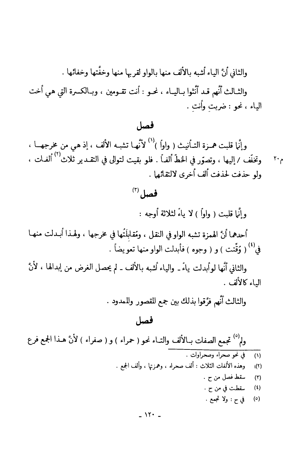 وإنَّما قلبت همزَة التَّأْنِيث (واواً) لأنَّها تشبه الْألف إِذْ هِيَ من مخرجها وتخفّف إِلَيْهَا وتصوّر فِي الخطّ ألفا فَلَو بقيت لتوالى فِي التَّقْدِير ثَلَاث ألفات وَلَو حذفت لحذفت ألف أُخْرَى لالتقائهما
