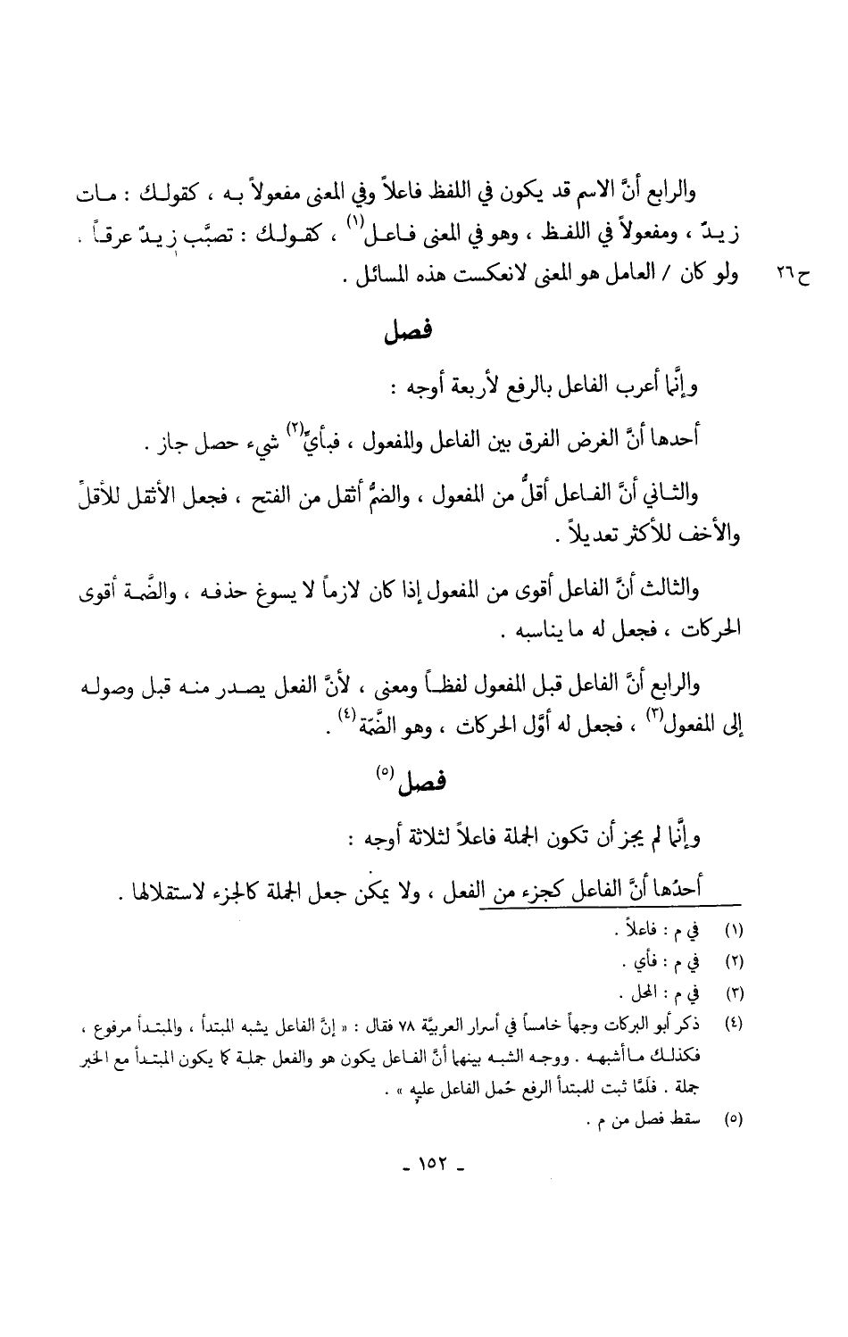 وإنَّما أعرب الْفَاعِل بِالرَّفْع لأربعة أوجه أَحدهَا أنَّ الْغَرَض الْفرق بَين الْفَاعِل وَالْمَفْعُول فبأيِّ شيْ حصل جَازَ