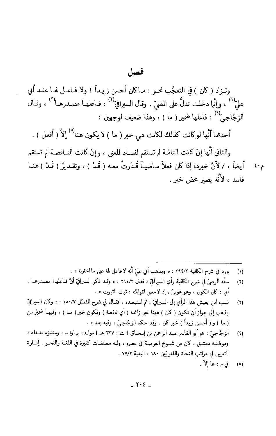 وتزاد (كَانَ) فِي التعجُّب نَحْو مَا كَانَ أحسن زيدا وَلَا فَاعل لَهَا عِنْد أبي عليّ وإنَّما دخلت تدلُّ على المضيّ وَقَالَ السيرافي فاعلها مصدرها وَقَالَ الزجَّاجي فاعلها ضمير (مَا) وَهَذَا ضَعِيف لوَجْهَيْنِ