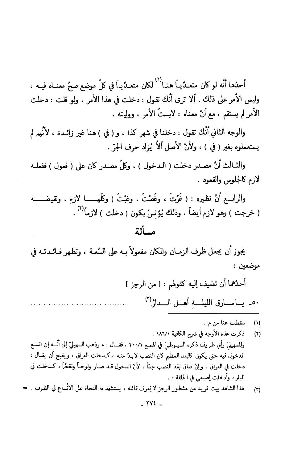 وَالثَّالِث أنَّ مصدر دخلت (الدُّخُول) وكلّ مصدر كَانَ على (فعول) فَفعله لَازم كالجلوس وَالْقعُود