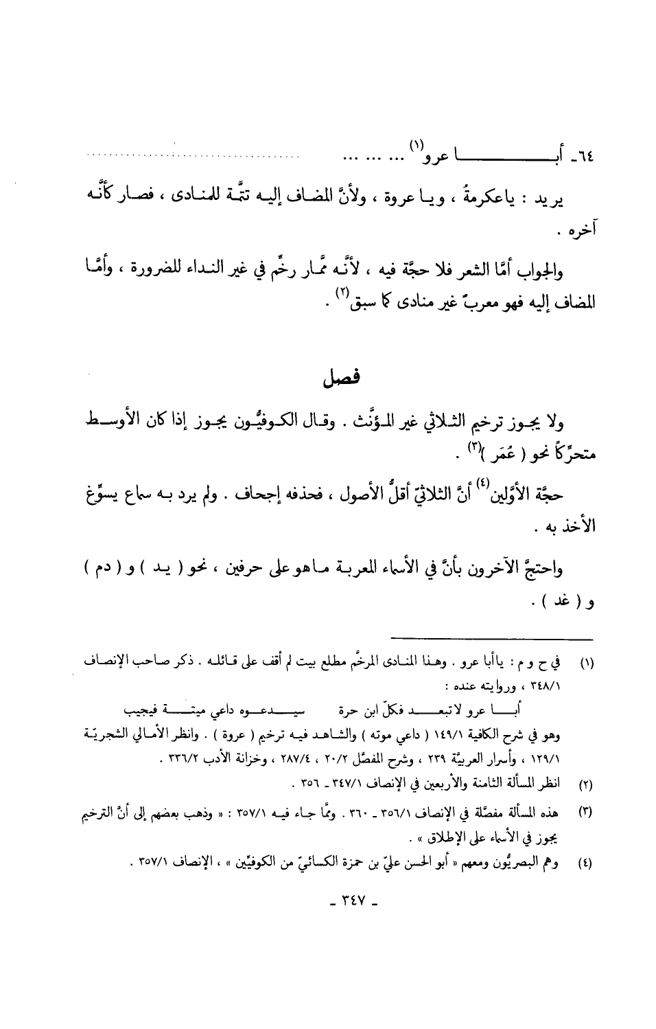 (أَبَا عرو ... ) // الطَّوِيل // يُرِيد يَا عكرمةُ وَيَا عُرْوَة ولأنَّ الْمُضَاف إِلَيْهِ تتمّة للمنادى فَصَارَ كأنَّه آخِره وَالْجَوَاب أمَّا الشّعْر فَلَا حجَّة فِيهِ لأنَّه ممَّار رخَّم فِي غير النداء للضَّرُورَة وأمَّا الْمُضَاف إِلَيْهِ فَهُوَ معربٌ غير منادى كَمَا سبق