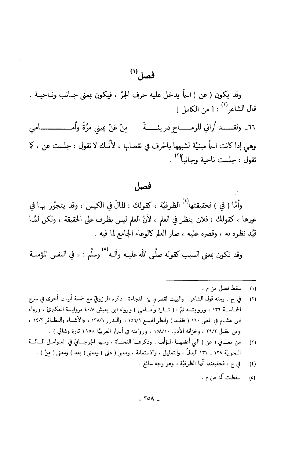 وَقد يكون (عَن) اسْما يدْخل عَلَيْهِ حرف الجرّ فَيكون بِمَعْنى جَانب وناحية قَالَ الشَّاعِر 66