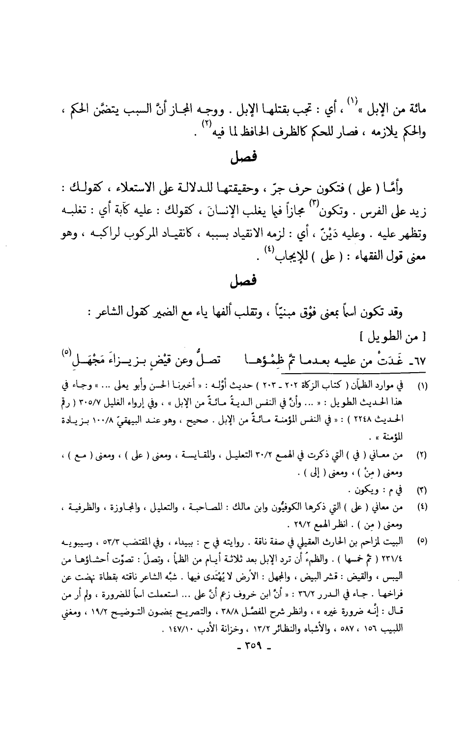 وَقد تكون اسْما بِمَعْنى فوْق مبنيّاً وتقلب ألفها يَاء مَعَ الضَّمِير كَقَوْل الشَّاعِر 67 -