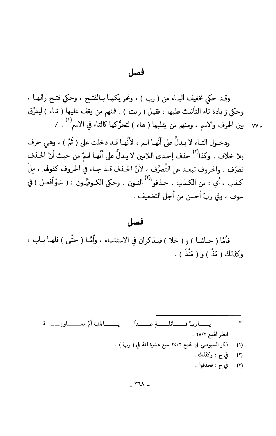 وَدخُول التَّاء لَا يدلُّ على أنَّها اسْم لِأَنَّهَا قد دخلت على (ثُمَّ) وَهِي حرف بِلَا خلاف وَكَذَا حذف إِحْدَى اللامين لَا يدلُ على انها اسمٌ من حَيْثُ أنَّ الْحَذف تصرّف والحروف تبعد عَن التَّصرُّف لأنَّ الْحَذف قد جَاءَ فِي الْحُرُوف كَقَوْلِهِم (سَوْ أفعل) فِي سَوف وَفِي ربّ أحسن من اجل التَّضْعِيف