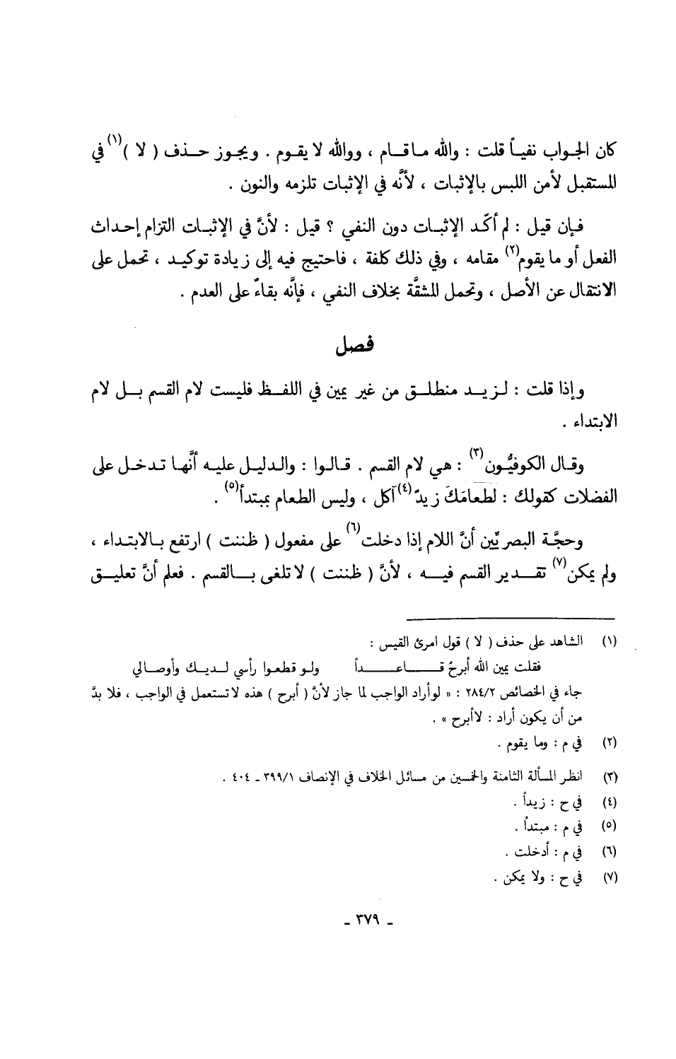 كَانَ الْجَواب نفيا قلت وَالله مَا قَامَ وَوَاللَّه لَا يقوم وَيجوز حذف (لَا) فِي الْمُسْتَقْبل لأمن اللّبْس بالإثبات لأنَّه فِي الْإِثْبَات تلْزمهُ وَالنُّون