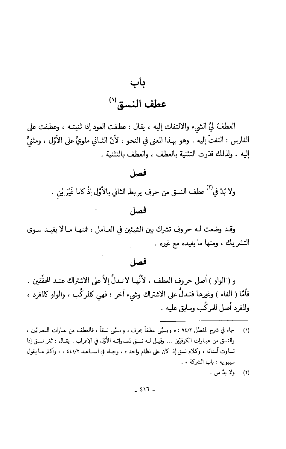 وَلَا بدَّ فِي عطف النسق من حرف يرْبط الثَّانِي بالأوَّل إذْ كَانَا غَيْرَيْنِ