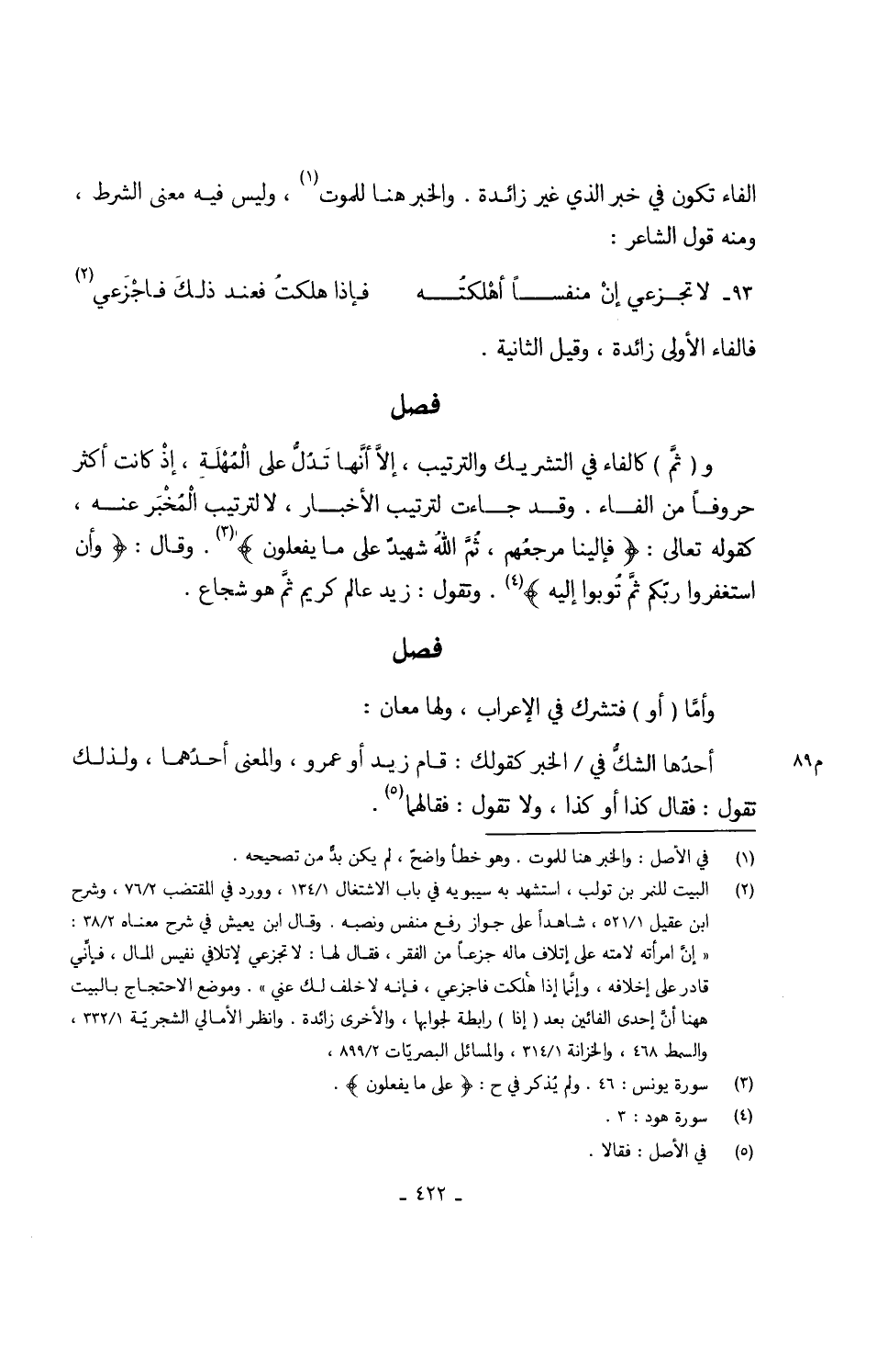 و (ثّم) كالفاء فِي التَّشْرِيك والتريب إلاَ أنَّها تَدُلُّ على الْمُهَلةِ إذْ كَانَت أَكثر حروفا من الْفَاء وَقد جَاءَت لترتيب الْأَخْبَار لَا لترتيب الْمخبر عَنهُ كَقَوْلِه تَعَالَى {فإلينا مرجُعهم ثُمَّ اللهُ شهيدٌ على مَا يَفْعَلُونَ} وَقَالَ {وَأَن اسْتَغْفرُوا ربّكم ثمَّ توُبوا إِلَيْهِ} وَتقول زيد عَالم كريم ثَّم هُوَ شُجَاع