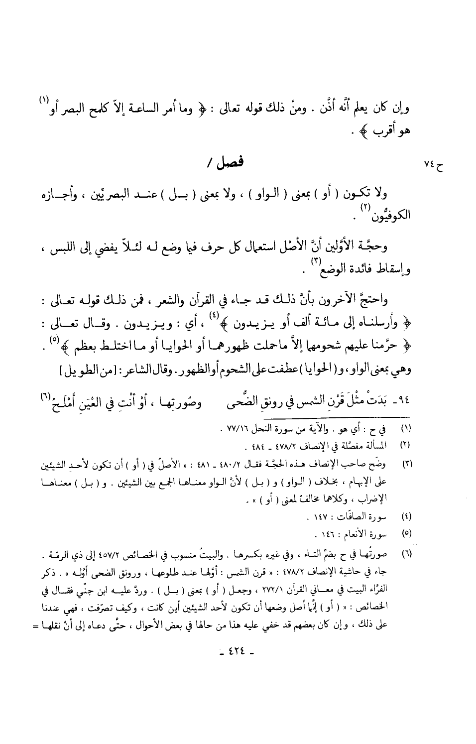 وَلَا تكون (أَو) بِمَعْنى (الْوَاو) وَلَا بِمَعْنى (بل) عِنْد البصرَّيين وَأَجَازَهُ الكوفَّيون