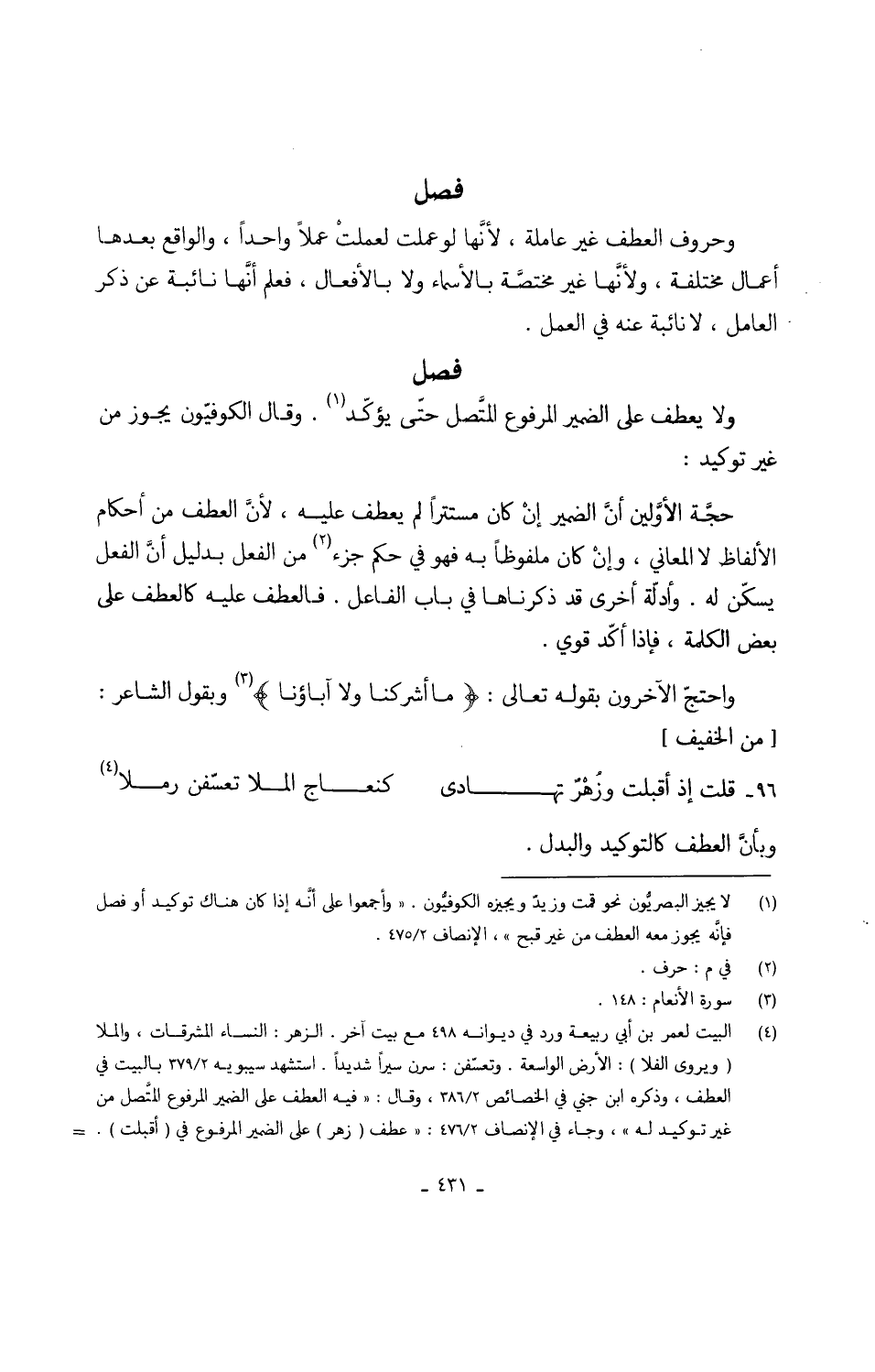 وَلَا يعْطف على الضَّمِير الْمَرْفُوع الْمُتَّصِل حتّى يُؤَكد وَقَالَ الكوفَّيون يجوز من غير توكيد