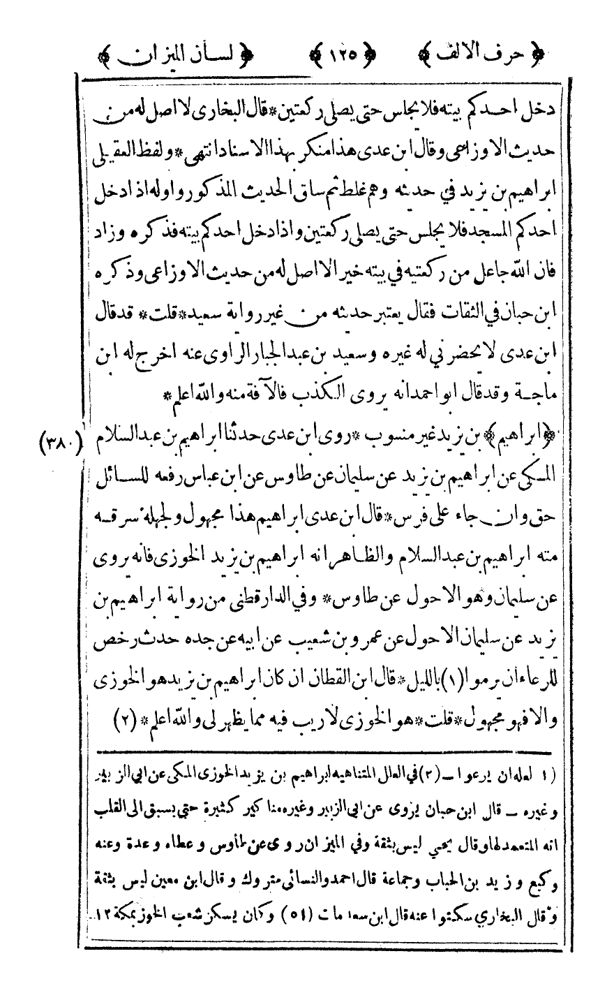 [380] "إبراهيم" بن يزيد غير منسوب روى ابن عدي حدثنا إبراهيم بن عبد السلام المكي عن إبراهيم بن يزيد عن سليمان عن طاوس عن ابن عباس رفعه للسائل حق وأن جاء على فرس قال ابن عدي إبراهيم هذا مجهول ولجهله سرقه منه إبراهيم بن عبد السلام والظاهر أنه إبراهيم بن يزيد الخوزي فإنه يروي عن سليمان وهو الأحول عن طاوس وفي الدارقطني من رواية إبراهيم بن يزيد عن سليمان الأحول عن عمرو بن شعيب عن أبيه عن جده حدث رخص للرعاء أن يرموا1 بالليل قال ابن القطان إن كان إبراهيم بن يزيد هو الخوزي وإلا فهو مجهول قلت هو الخوزي لا ريب فيه مما يظهر لي والله أعلم2.
