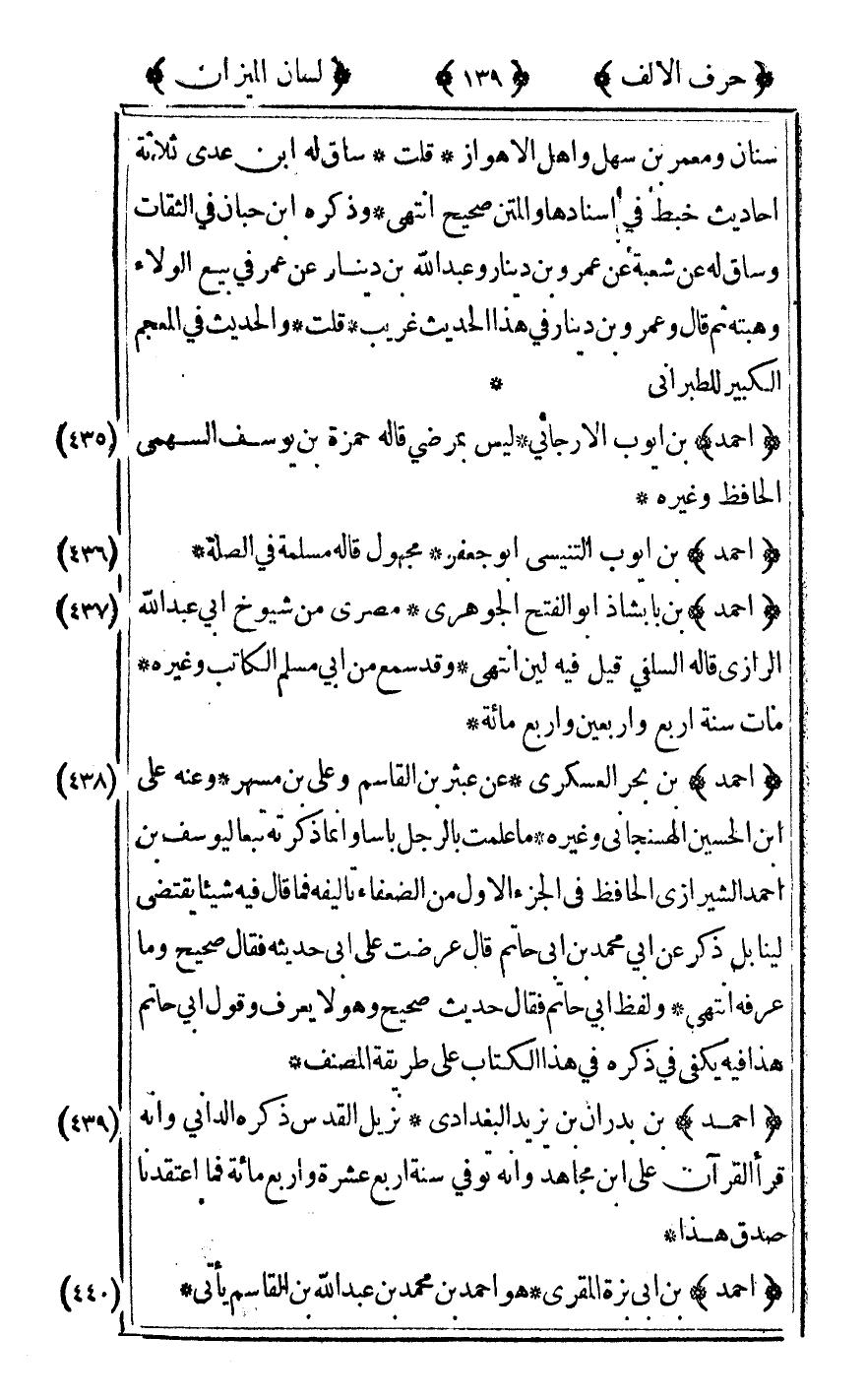 [435] "أحمد" بن أيوب الأرجائي ليس بمرضي قاله حمزة بن يوسف السهمي الحافظ وغيره.