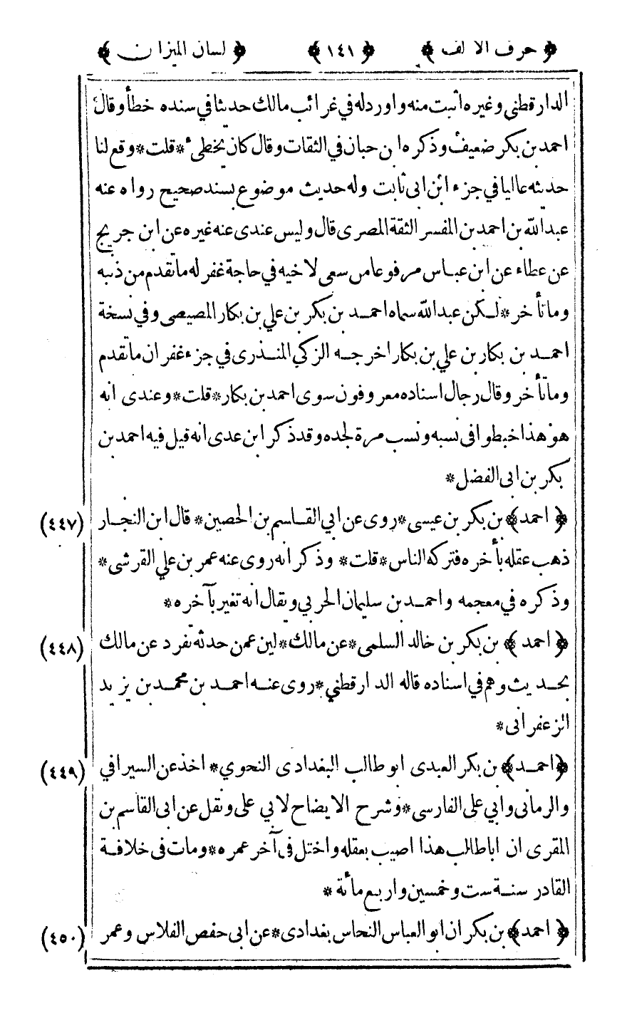 [450] "أحمد" بن بكران أبو العباس النحاس بغدادي عن أبي حفص الفلاس وعمر