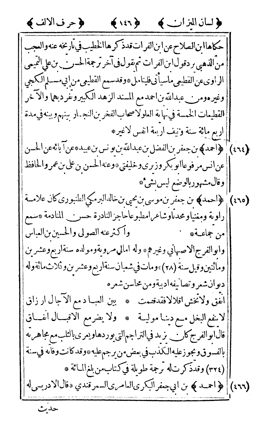 [466] "أحمد" بن أبي جعفر البكري العامري السمرقندي قال الإدريسي له
