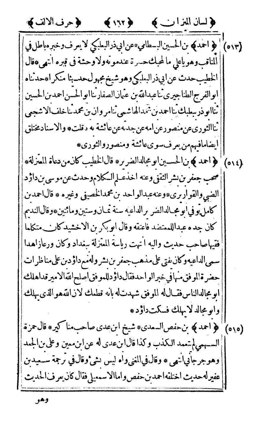 [515] "أحمد" بن حفص السعدي شيخ بن عدي صاحب مناكير قال حمزة السهمي لم يتعمد الكذب وكذا قال ابن عدي له عن ابن معين وعلي بن الجعد وهو جرجاني انتهى وقال في المغني واه ليس بشيء وقال في ترجمة سعيد بن عفير له حديث اختلقه أحمد بن حفص وأما الإسماعيلي فقال كان يعرف الحديث