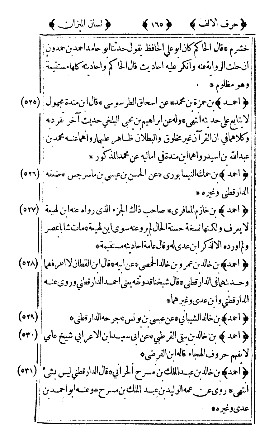 [528] "أحمد" بن خالد بن عمرو بن خالد الحمصي عن أبيه قال ابن القطان لا أعرفهما وحديثهما في الدارقطني قال شيخنا قد وثقه يعني أحمد الدارقطني وروى عنه الدارقطني وابن عدي وغيرهما.