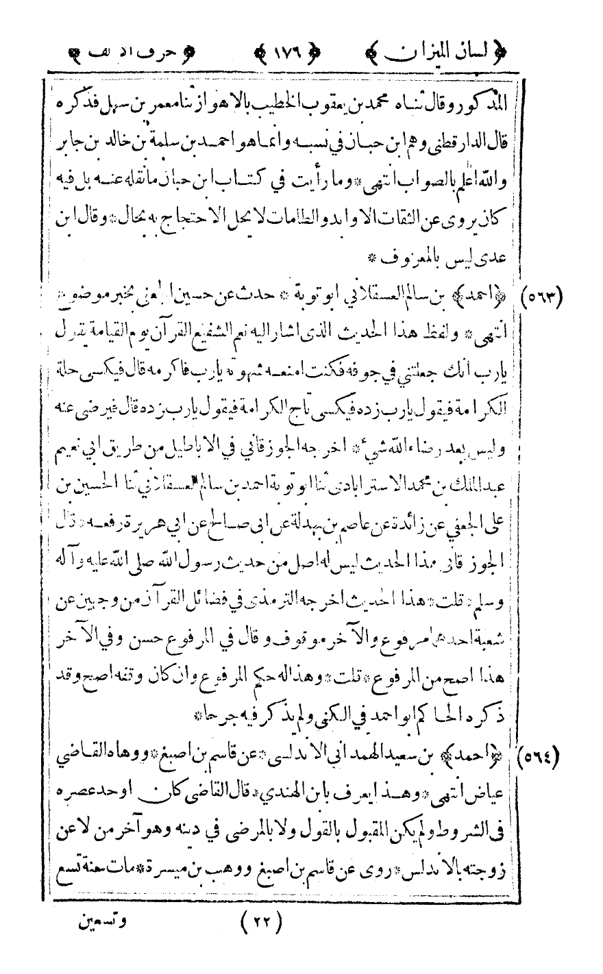 [564] "أحمد" بن سعيد الهمداني الأندلسي عن قاسم بن أصبغ ووهاه القاضي عياض انتهى وهذا يعرف بابن الهندي قال القاضي كان أوحد عصره في الشروط ولم يكن المقبول بالقول ولا بالمرضى في دينه وهو آخر من لاعن زوجته بالأندلس روى عن قاسم بن أصبغ ووهب بن ميسرة مات سنة تسع