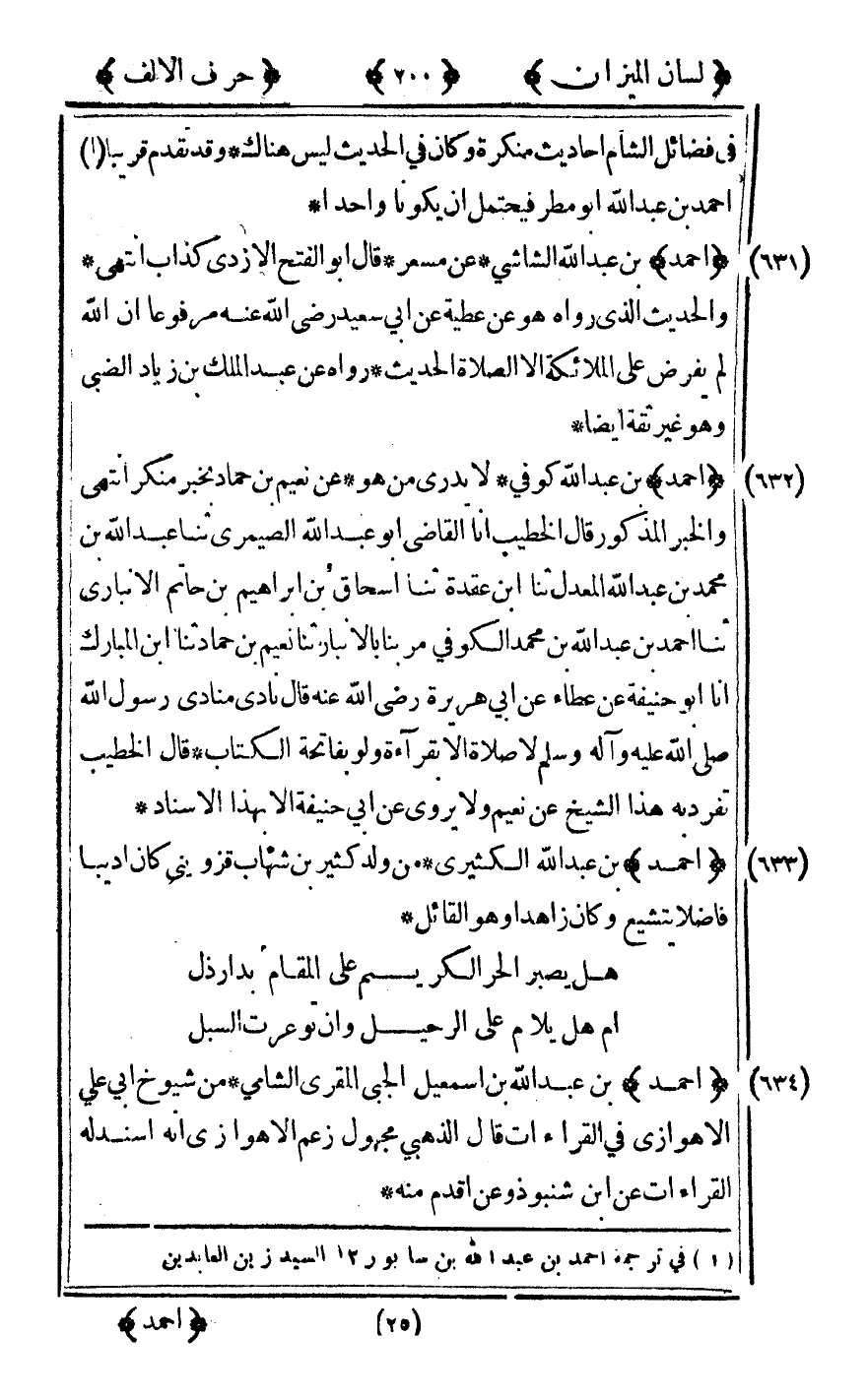[631] "أحمد" بن عبد الله الشاشي عن مسعر قال أبو الفتح الأزدي كذاب انتهى والحديث الذي رواه هو عن عطية عن أبي سعيد رضى الله تعالى عنه مرفوعا أن الله لم يفرض على الملائكة إلا الصلاة الحديث رواه عن عبد الملك بن زياد الضبي وهو غير ثقة أيضا.