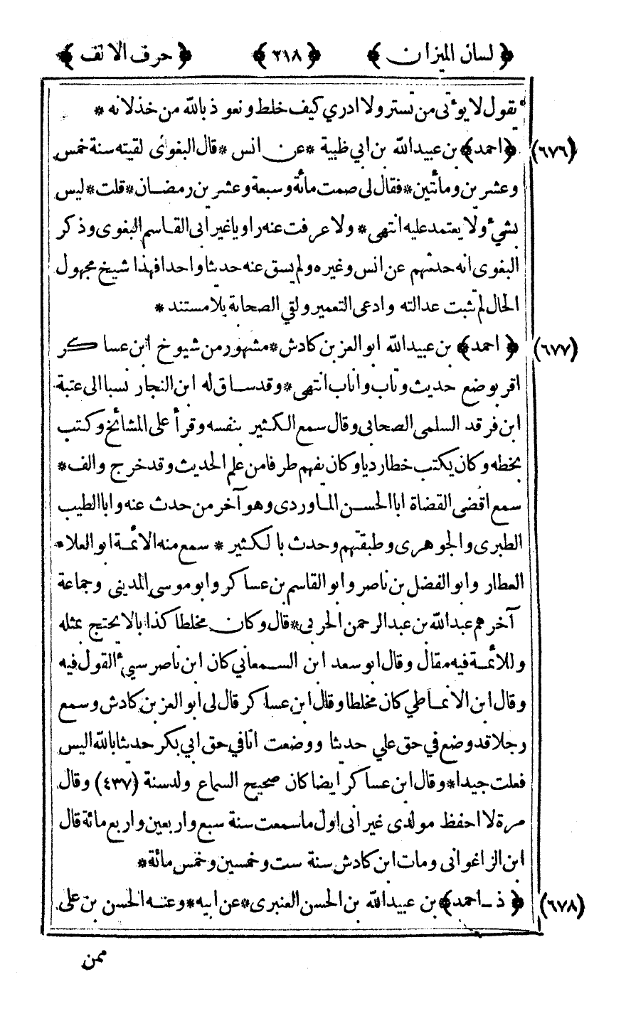 [676] "أحمد" بن عبيد الله بن أبي ظبية عن أنس قال البغوي لقيته سنة خمس وعشرين ومائتين فقال لي صمت مائة وسبعة وعشرين رمضان قلت ليس بشيء ولا يعتمد عليه انتهى ولا عرفت عنه راويا غير أبي القاسم البغوي وذكر البغوي إنه حدثهم عن أنس وغيره ولم يسق عنه حديثا واحدا فهذا شيخ مجهول الحال لم تثبت عدالته وادعى التعمير ولقي الصحابة بلا مستند.