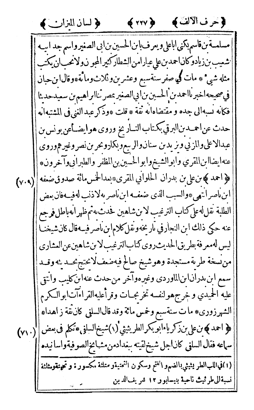 [710] "أحمد" بن علي بن زكريا أبو بكر الطريثيثي1 شيخ السلفي تكلم في بعض سماعه فقال السلفي كان أجل شيخ لقيته ببغداد من مشايخ الصوفية وأسانيده