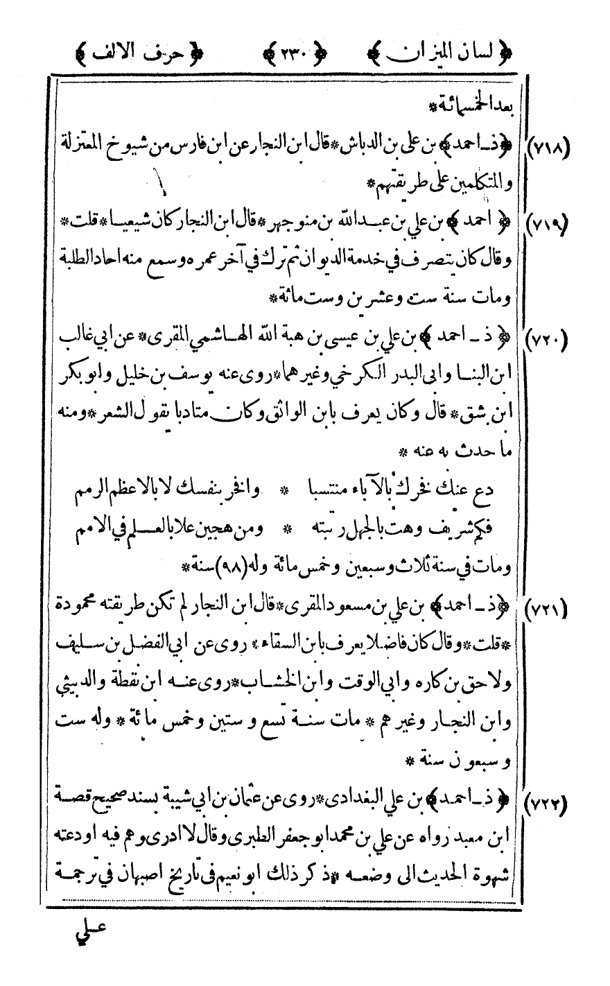 [718] "ذ - أحمد" بن علي بن الدباش قال ابن النجار عن ابن فارس من شيوخ المعتزلة والمتكلمين على طريقتهم.