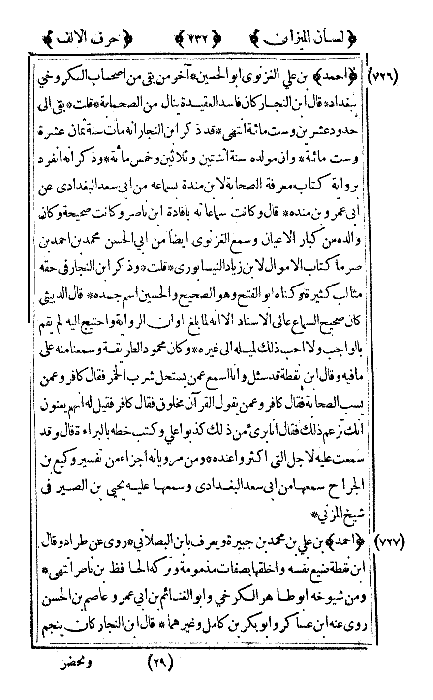[727] "أحمد" بن علي بن محمد بن جبيرة ويعرف بابن البصلاني روى عن طراد وقال ابن نقطة ضيع نفسه واخلقها بصفات مذمومة وتركه الحافظ بن ناصر انتهى.