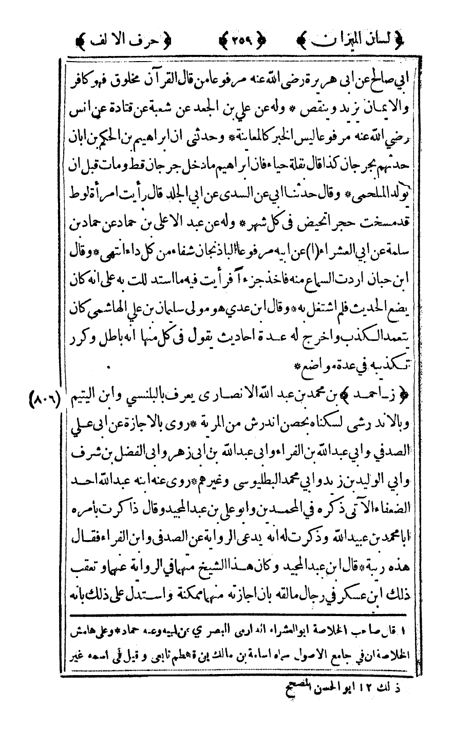 أبي صالح عن أبي هريرة رضى الله تعالى عنه مرفوعا من قال القرآن مخلوق فهو كافر والإيمان يزيد وينقص وله عن علي بن الجعد عن شعبة عن قتادة عن أنس رضى الله تعالى عنه مرفوعا ليس الخبر كالمعاينة وحدثني أن إبراهيم بن الحكم بن أبان حدثهم بجرجان كذا قال بقلة حياء فإن إبراهيم ما دخل جرجان قط ومات قبل أن يولد الملحمي وقال حدثنا أبي عن السدي عن أبي الجلد قال رأيت امرأة لوط قد مسخت حجرا تحيض في كل شهر وله عن عبد الأعلى بن حماد عن حماد بن سلمة عن أبي العشراء1 عن أبيه مرفوعا الباذنجان شفاء من كل داء انتهى وقال ابن حبان أردت السماع منه فأخذ جزءا فرأيت فيه ما استدللت به على أنه كان يضع الحديث فلم اشتغل به وقال ابن عدي وهو مولى سليمان بن علي الهاشمي كان يتعمد الكذب وأخرج له عدة أحاديث يقول في كل منها أنه باطل وكرر تكذيبه في عدة مواضع.