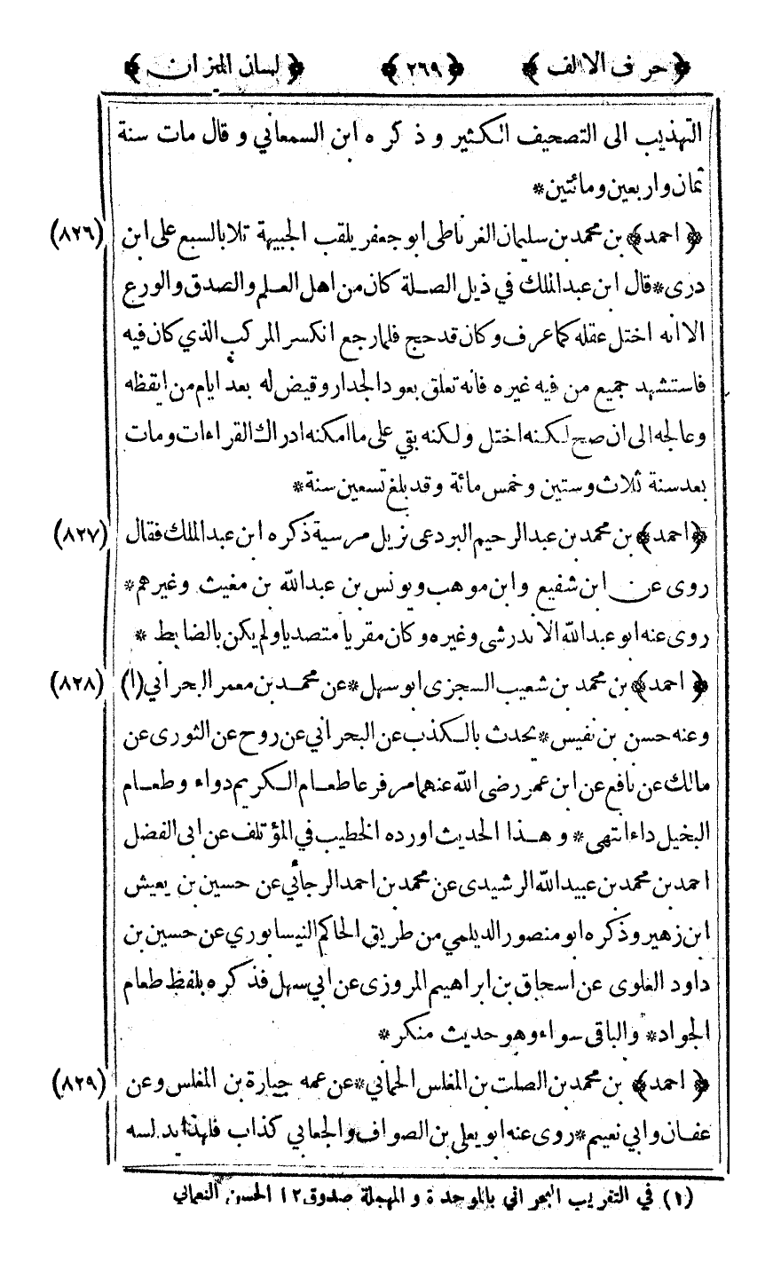 [829] "أحمد" بن محمد بن الصلت بن المغلس الحماني عن عمه جبارة بن المغلس وعن عفان وأبي نعيم روى عنه أبو يعلى بن الصواف والجعابي كذاب فلهذا يدلسه