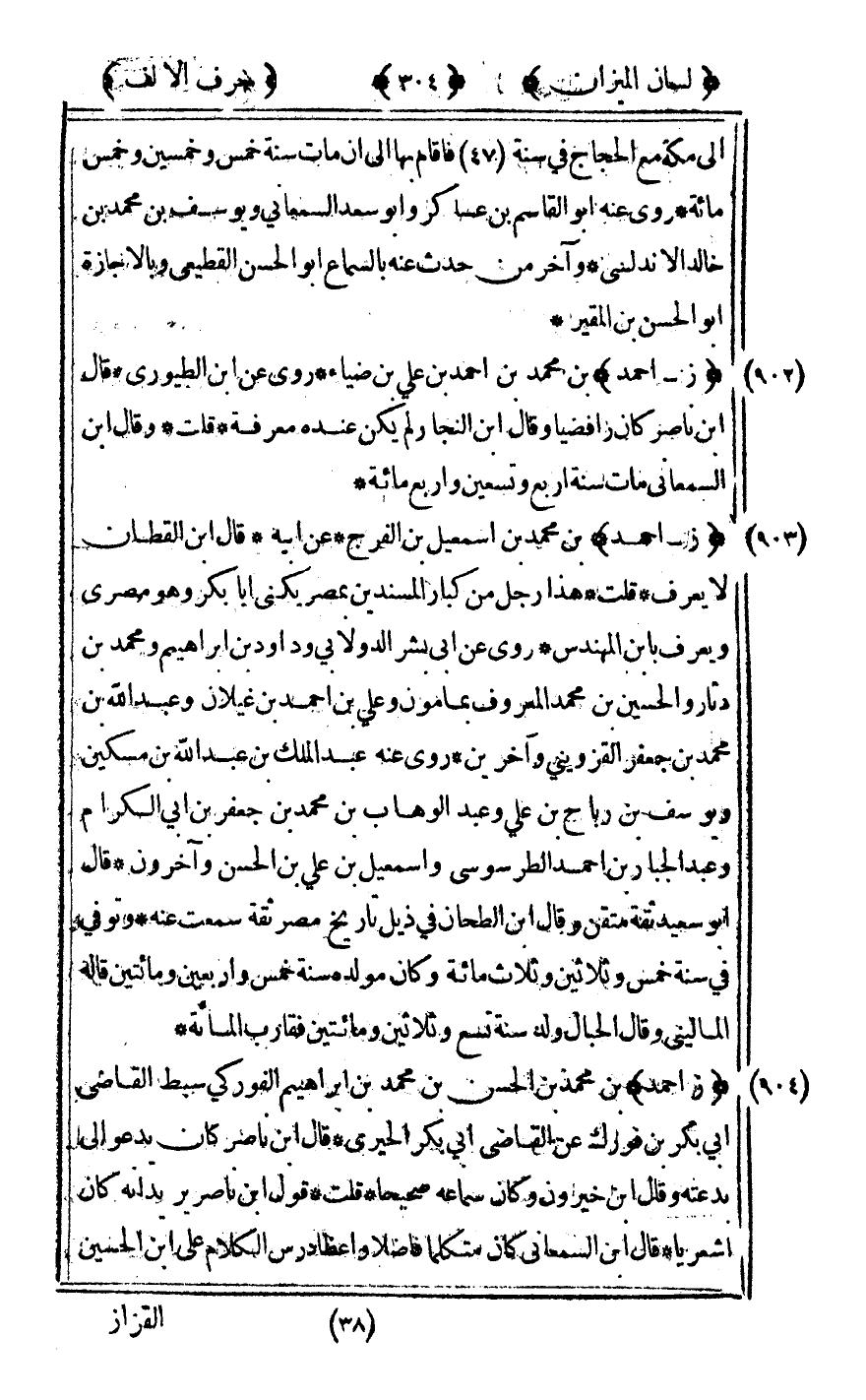 [902] "ز - أحمد" بن محمد بن أحمد بن علي بن ضياء روى عن ابن الطيوري قال ابن ناصر كان رافضيا وقال ابن النجار لم يكن عنده معرفة قلت وقال ابن السمعاني مات سنة أربع وتسعين وأربع مائة.