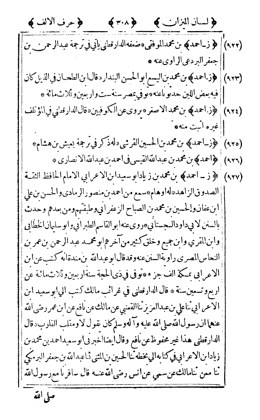 [922] "ز - أحمد" بن محمد الموفقي ضعفه الدارقطني يأتي في ترجمة عبد الرحمن بن جعفر البردعي الراوي عنه.