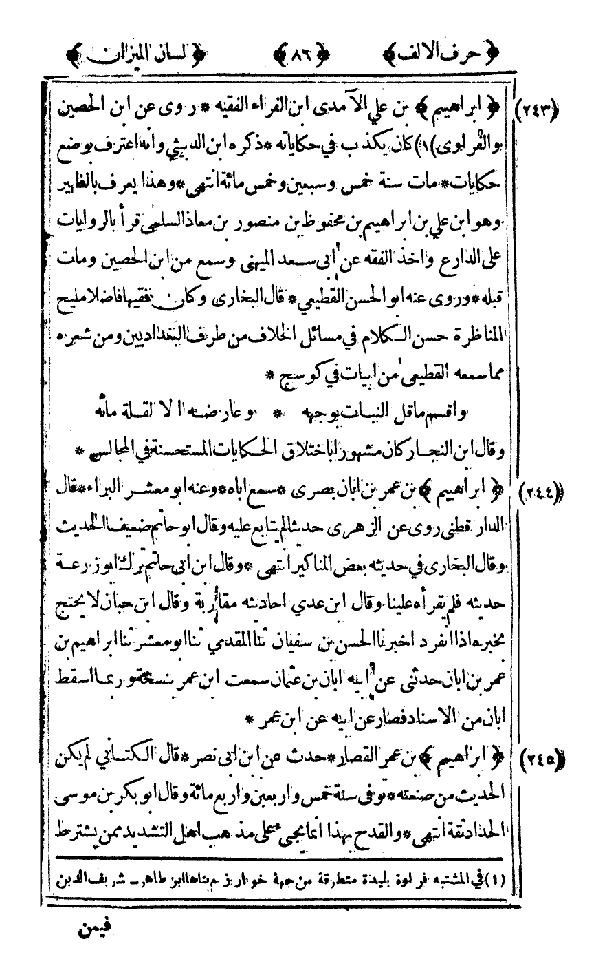 [245] "إبراهيم" بن عمر القصار حدث عن ابن أبي نصر قال الكتاني لم يكن الحديث من صنعته توفي سنة خمس وأربعين وأربع مائة وقال أبو بكر بن موسى الحداد ثقة انتهى والقدح بهذا إنما يجيء على مذهب أهل التشديد ممن يشترط