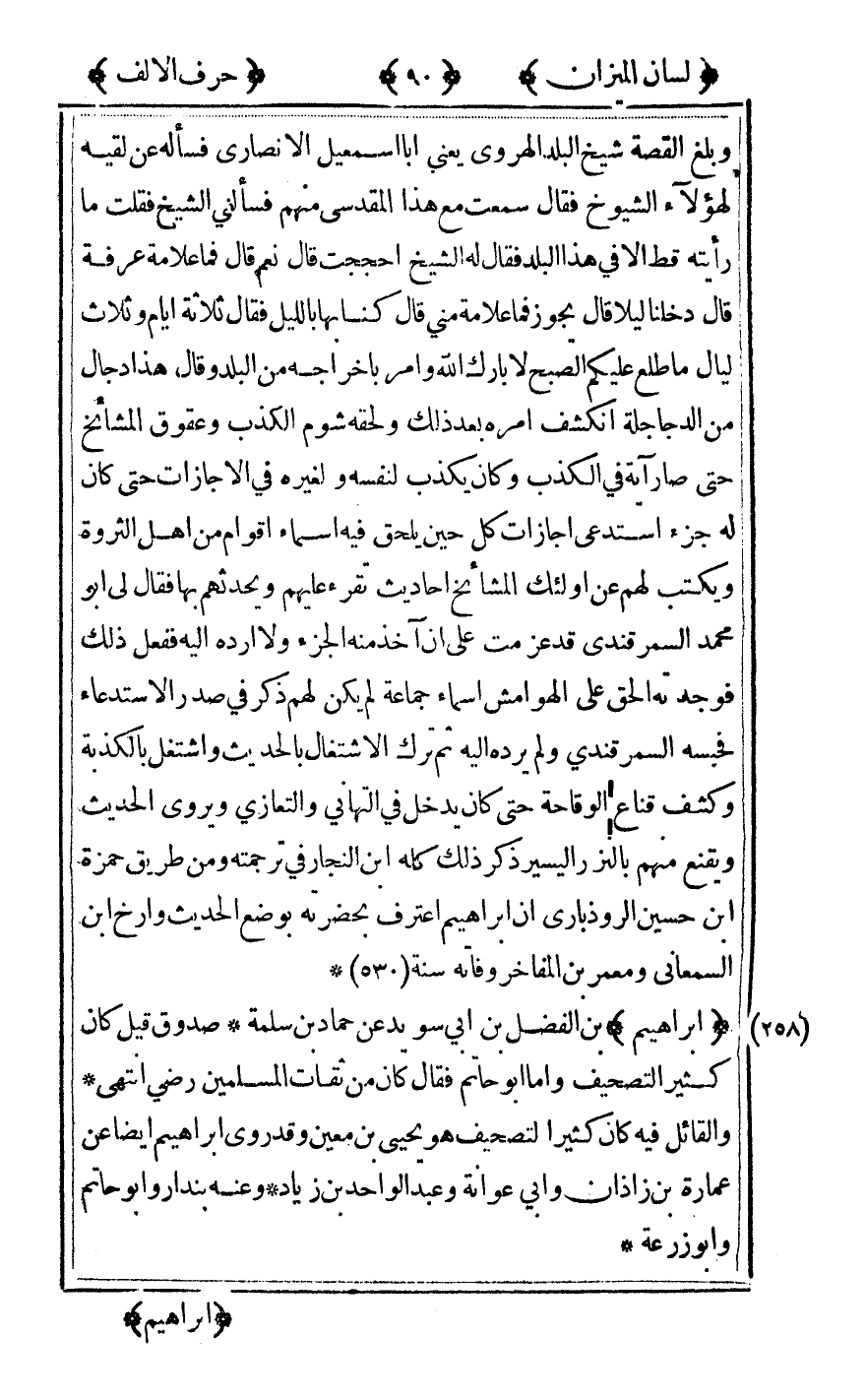 [258] "إبراهيم" بن الفضل بن أبي سويد عن حماد بن سلمة صدوق قيل كان كثير التصحيف واما أبو حاتم فقال كان من ثقات المسلمين رضي انتهى والقائل فيه كان كثير التصحيف هو يحيى بن معين وقد روى إبراهيم أيضا عن عمارة بن زاذان وأبي عوانة وعبد الواحد بن زياد وعنه بندار وأبو حاتم وأبو زرعة.