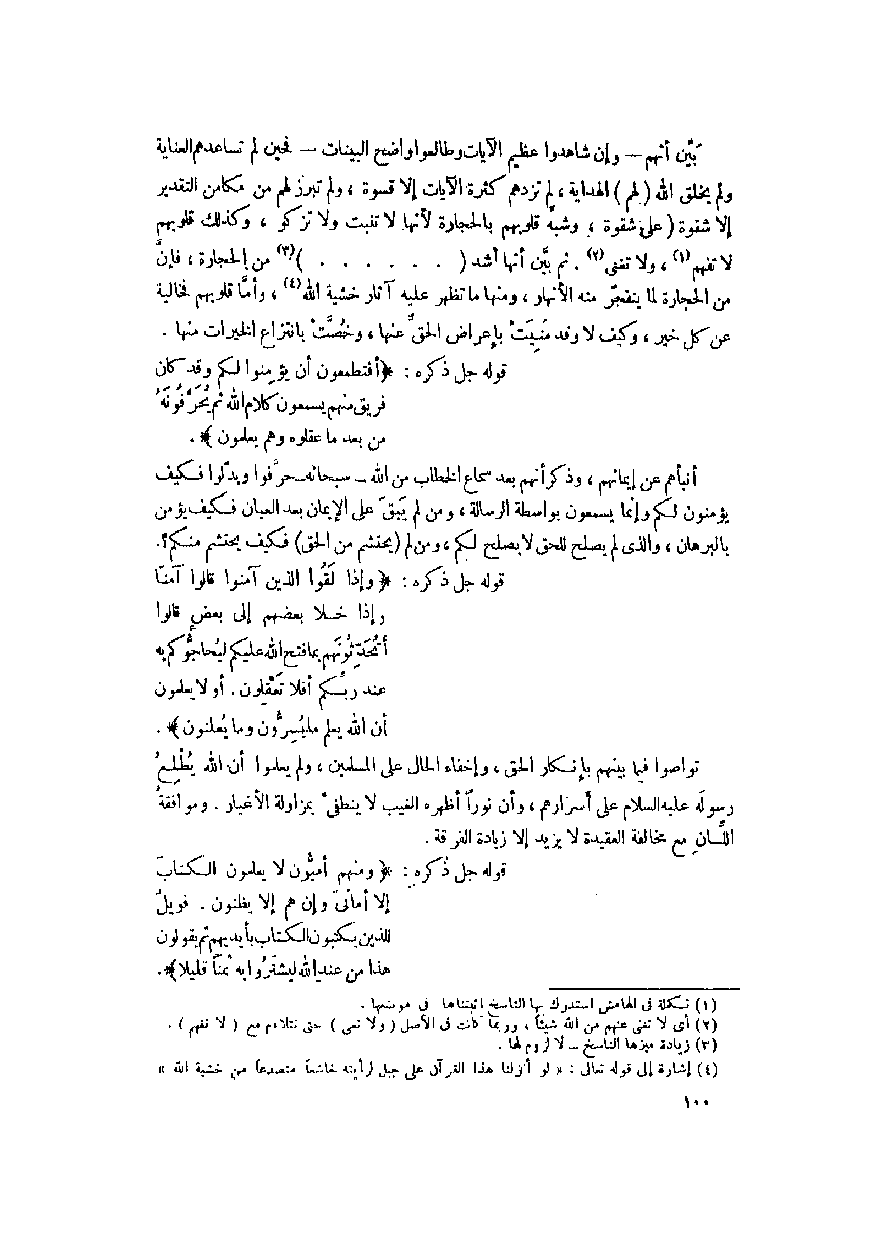أَفَتَطْمَعُونَ أَنْ يُؤْمِنُوا لَكُمْ وَقَدْ كانَ فَرِيقٌ مِنْهُمْ يَسْمَعُونَ كَلامَ اللَّهِ ثُمَّ يُحَرِّفُونَهُ مِنْ بَعْدِ ما عَقَلُوهُ وَهُمْ يَعْلَمُونَ (75) وَإِذا لَقُوا الَّذِينَ آمَنُوا قالُوا آمَنَّا وَإِذا خَلا بَعْضُهُمْ إِلى بَعْضٍ قالُوا أَتُحَدِّثُونَهُمْ بِما فَتَحَ اللَّهُ عَلَيْكُمْ لِيُحَاجُّوكُمْ بِهِ عِنْدَ رَبِّكُمْ أَفَلا تَعْقِلُونَ (76)