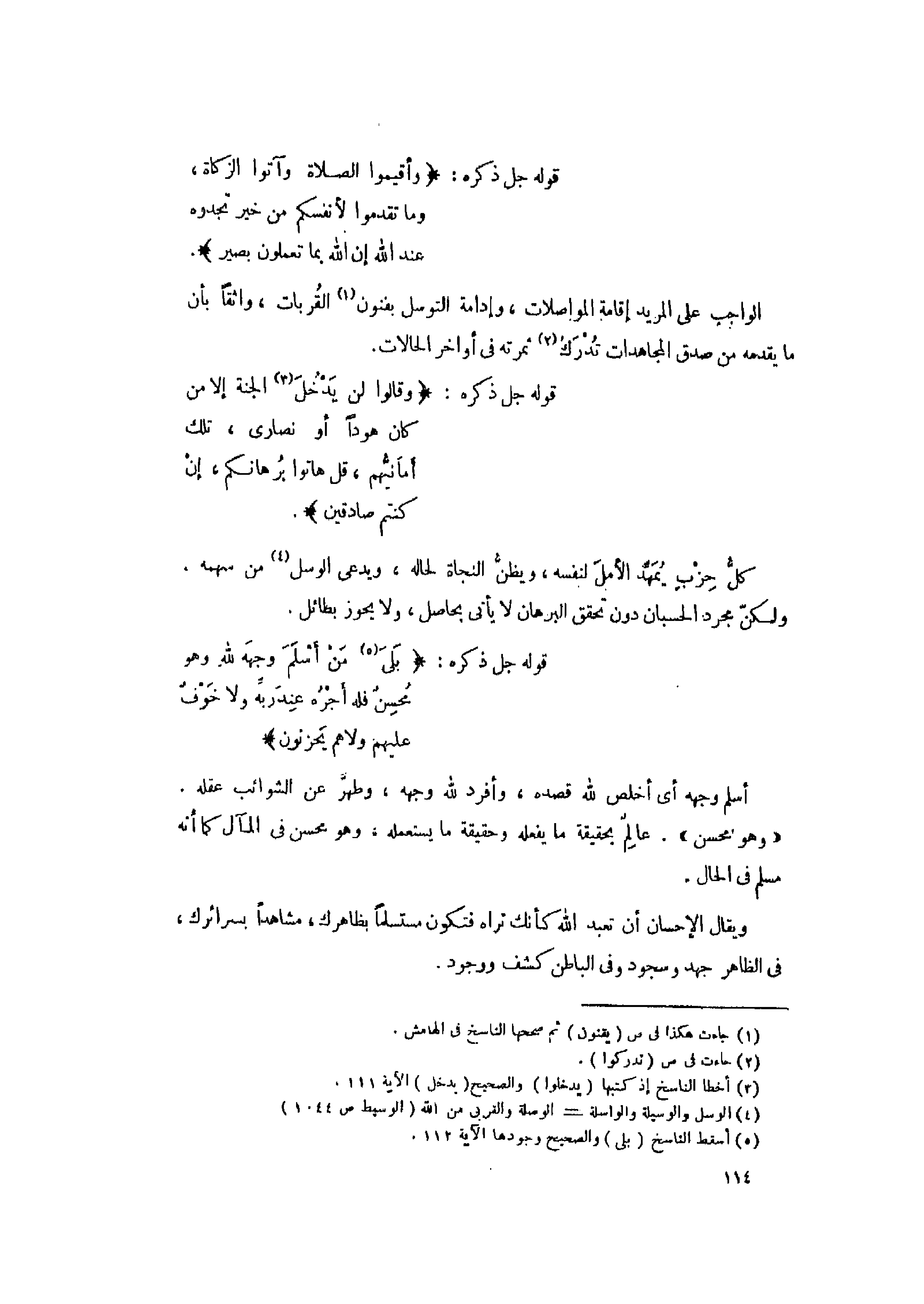 بَلى مَنْ أَسْلَمَ وَجْهَهُ لِلَّهِ وَهُوَ مُحْسِنٌ فَلَهُ أَجْرُهُ عِنْدَ رَبِّهِ وَلا خَوْفٌ عَلَيْهِمْ وَلا هُمْ يَحْزَنُونَ (112)