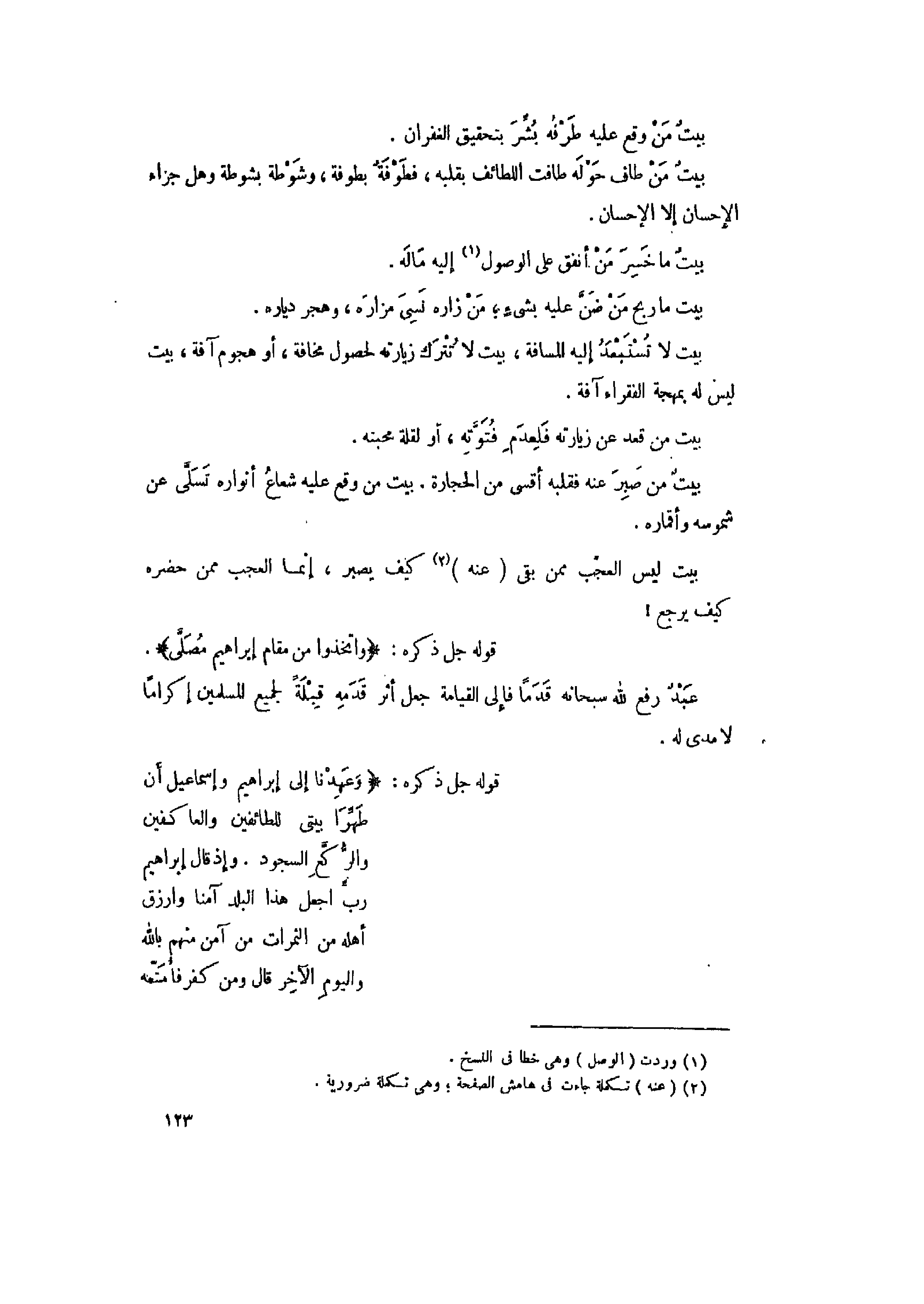 بيت ليس العجب ممن بقي (عنه) «2» كيف يصبر، إنما العجب ممن حضره كيف يرجع! قوله جل ذكره: وَاتَّخِذُوا مِنْ مَقامِ إِبْراهِيمَ مُصَلًّى.