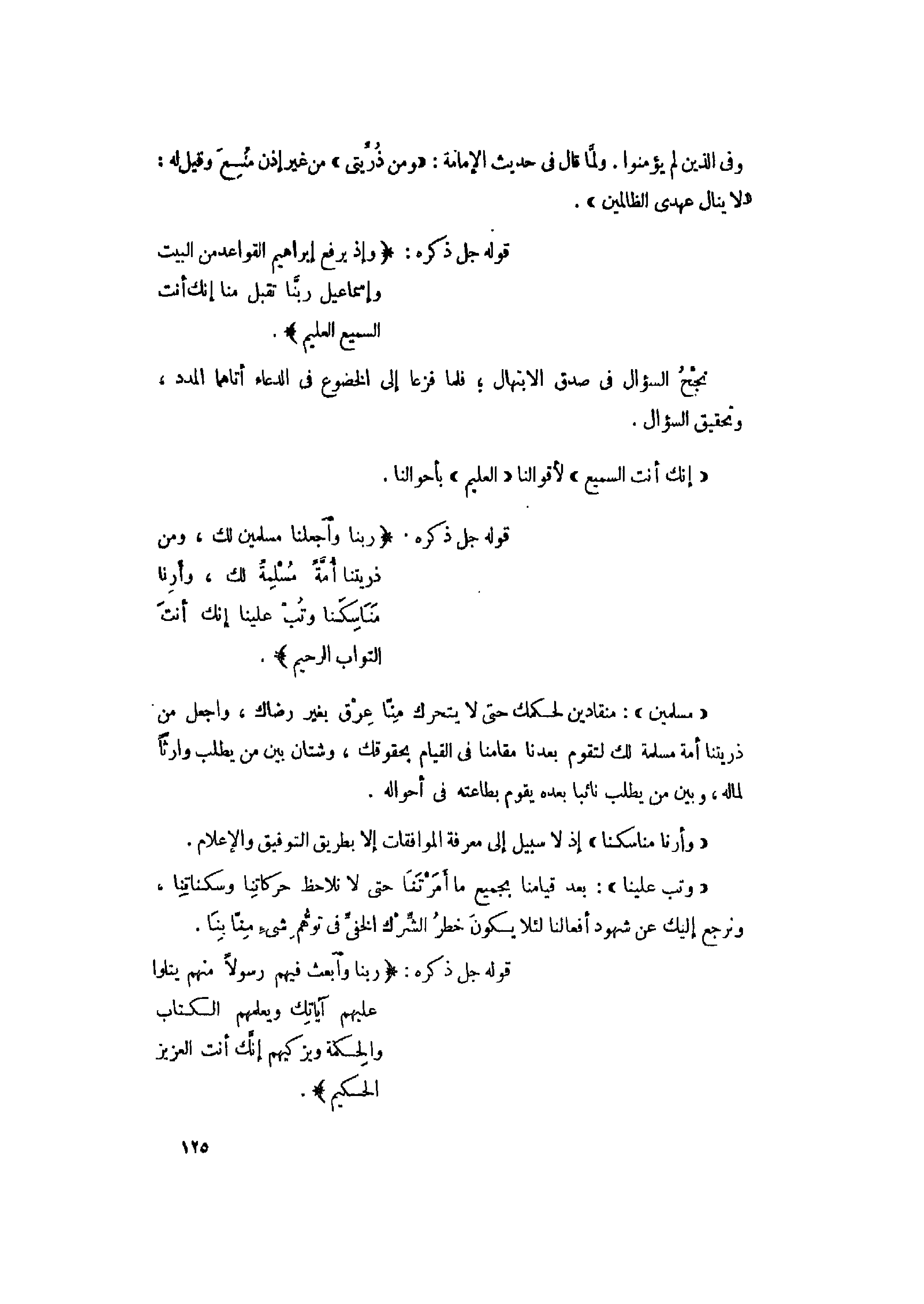 وفى الذين لم يؤمنوا. ولمّا قال فى حديث الإمامة: «ومن ذرّيتى» من غير إذن منع وقيل له: