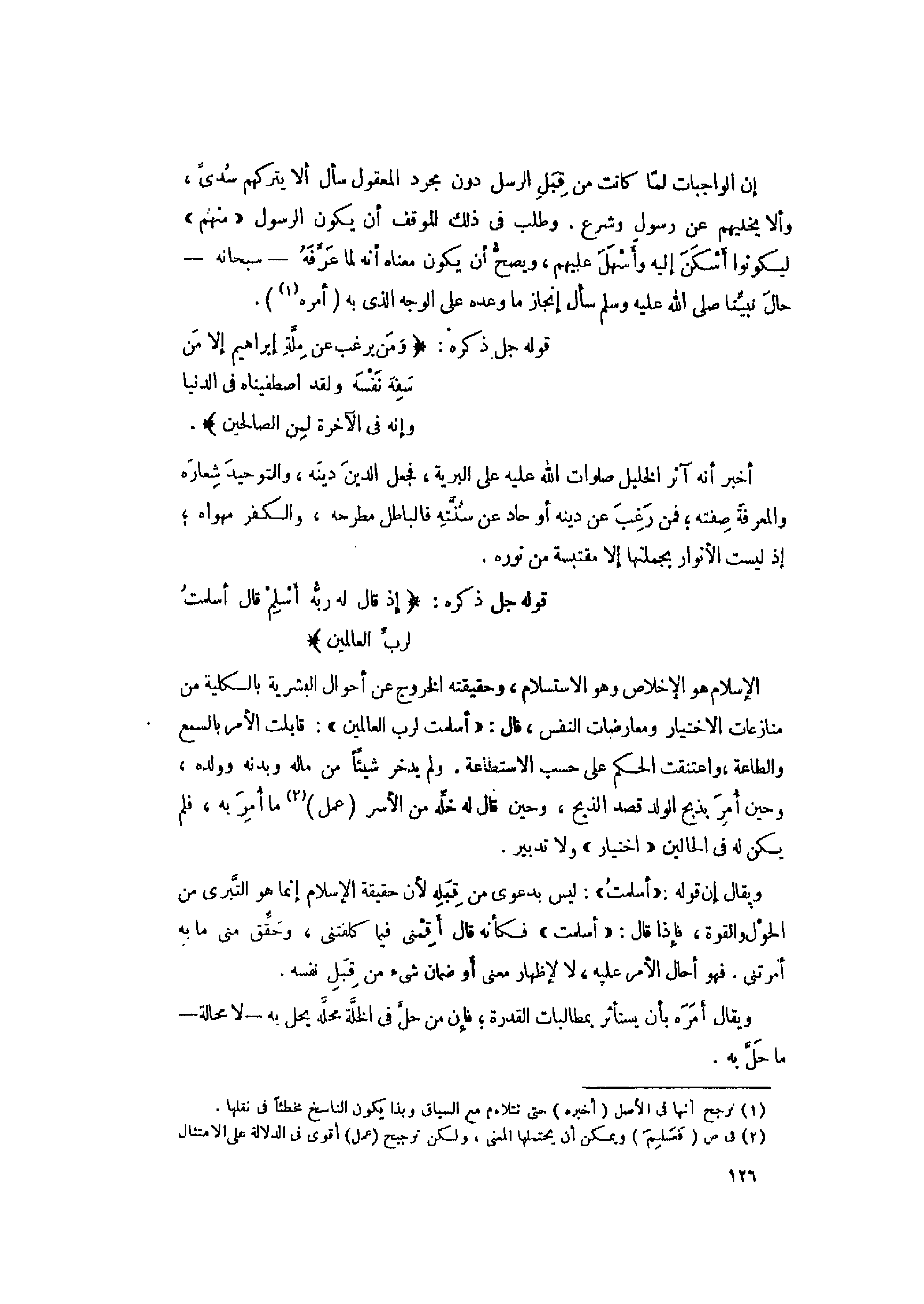 (2) فى ص (فعلم) ويمكن أن يحتملها المعنى، ولكن ترجيح (عمل) أقوى فى الدلالة على الامتثال.
