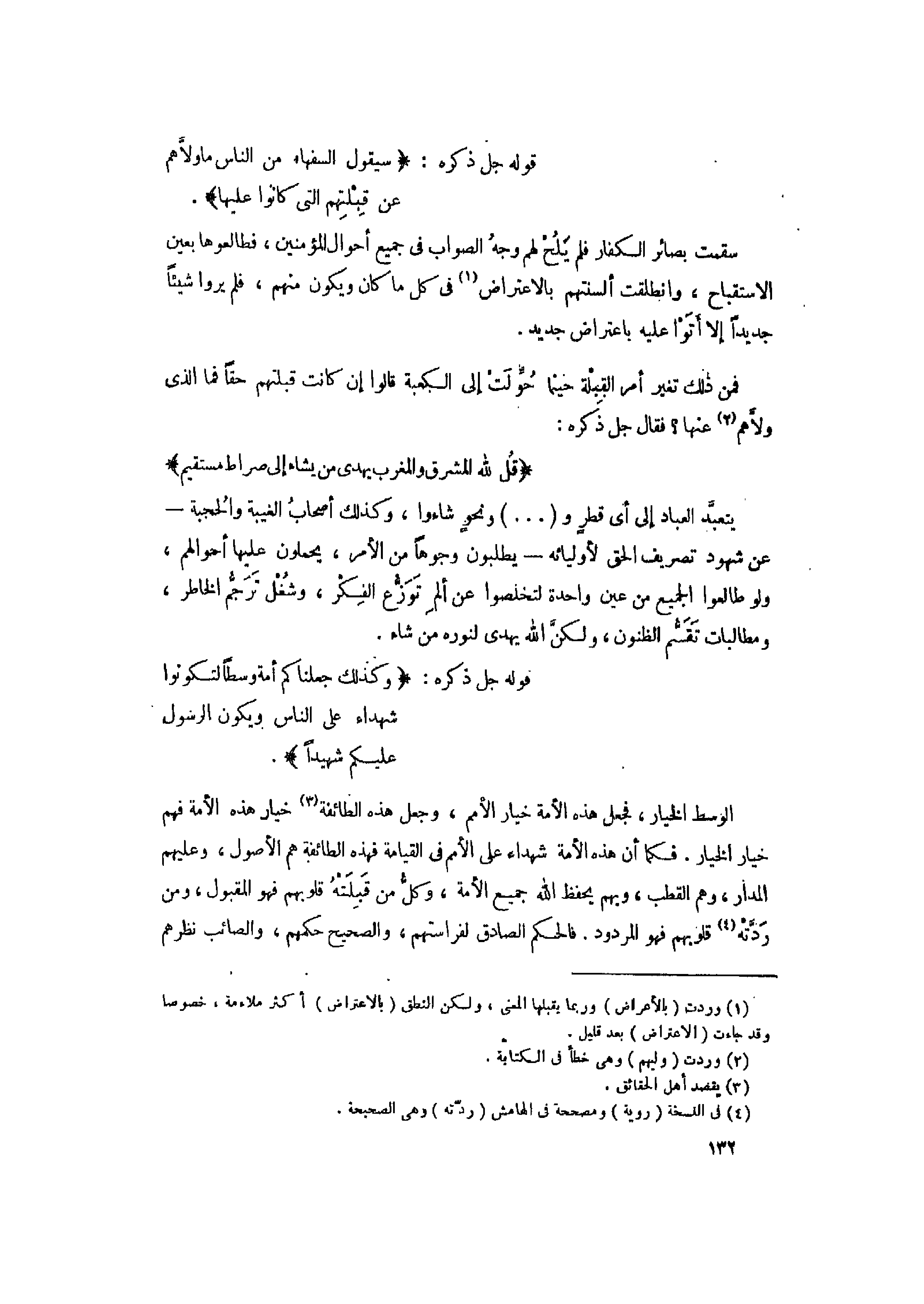 (1) وردت (بالأعراض) وربما يقبلها المعنى، ولكن النطق (بالاعتراض) أكثر ملاءمة، خصوصا وقد جاءت (الاعتراض) بعد قليل. [.....]
