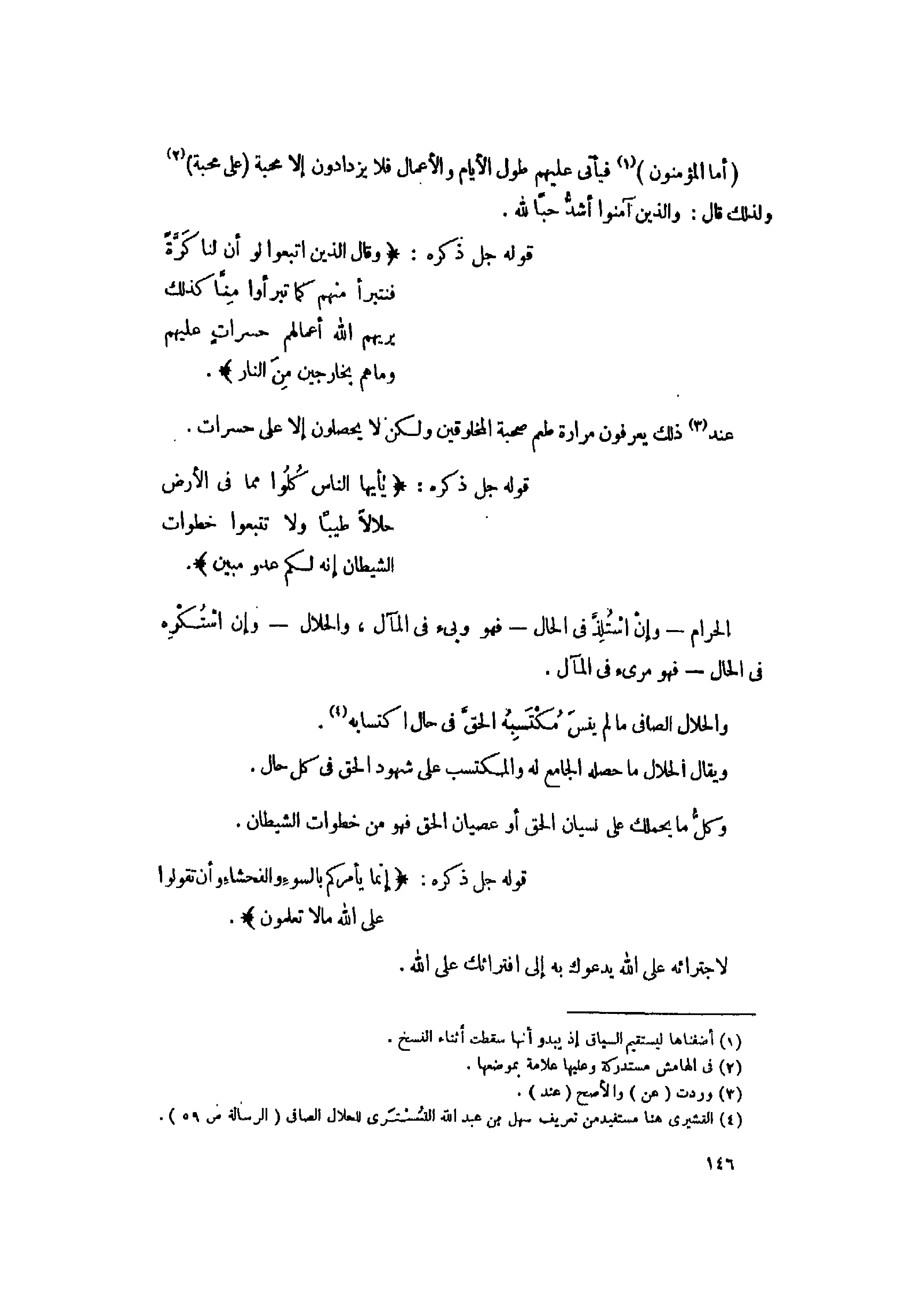 (4) القشيري هنا مستفيد من تعريف سهل بن عبد الله التستري للحلال الصافي (الرسالة ص 59) .