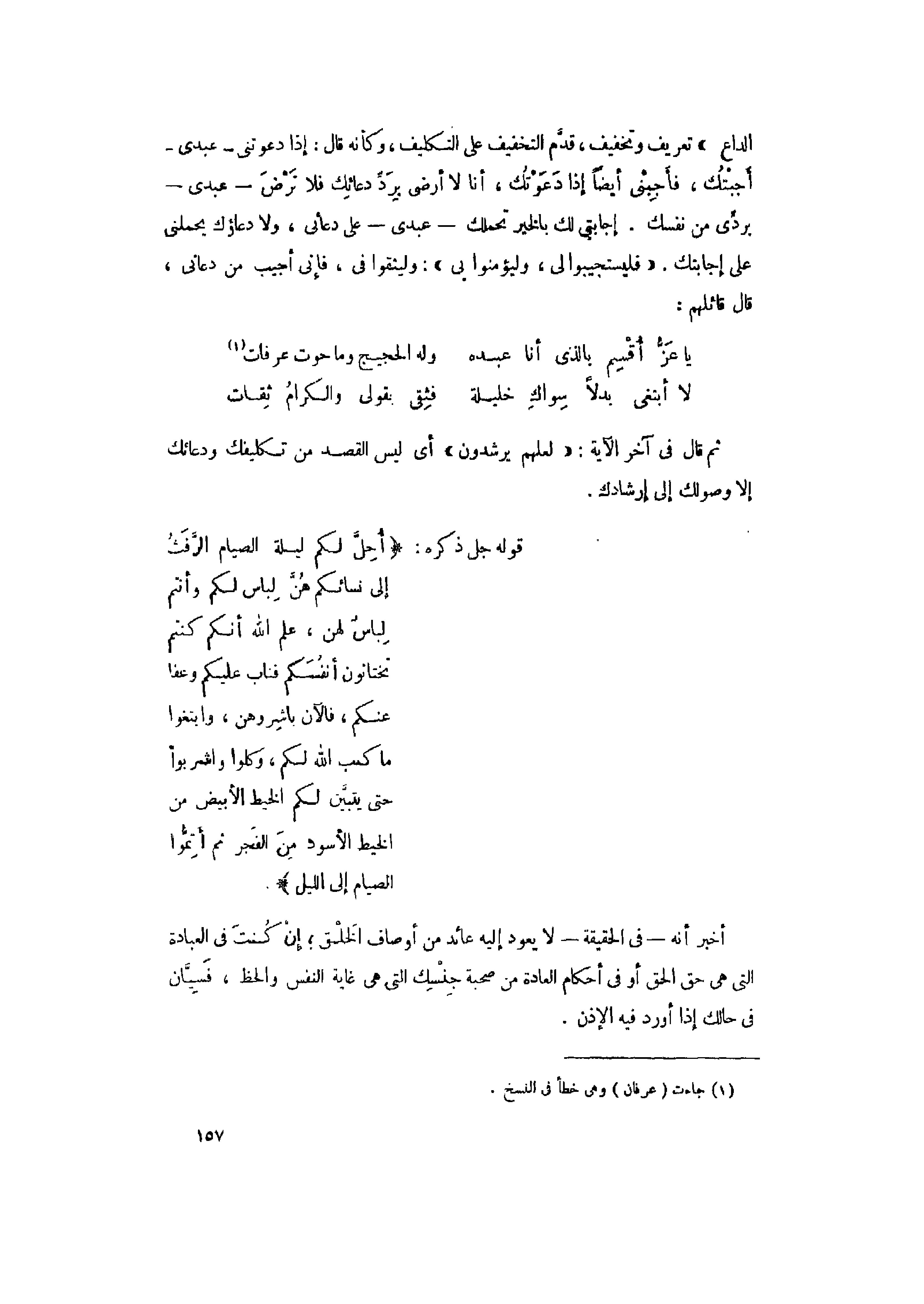 أُحِلَّ لَكُمْ لَيْلَةَ الصِّيامِ الرَّفَثُ إِلى نِسائِكُمْ هُنَّ لِباسٌ لَكُمْ وَأَنْتُمْ لِباسٌ لَهُنَّ عَلِمَ اللَّهُ أَنَّكُمْ كُنْتُمْ تَخْتانُونَ أَنْفُسَكُمْ فَتابَ عَلَيْكُمْ وَعَفا عَنْكُمْ فَالْآنَ بَاشِرُوهُنَّ وَابْتَغُوا ما كَتَبَ اللَّهُ لَكُمْ وَكُلُوا وَاشْرَبُوا حَتَّى يَتَبَيَّنَ لَكُمُ الْخَيْطُ الْأَبْيَضُ مِنَ الْخَيْطِ الْأَسْوَدِ مِنَ الْفَجْرِ ثُمَّ أَتِمُّوا الصِّيامَ إِلَى اللَّيْلِ وَلا تُبَاشِرُوهُنَّ وَأَنْتُمْ عاكِفُونَ فِي الْمَساجِدِ تِلْكَ حُدُودُ اللَّهِ فَلا تَقْرَبُوها كَذلِكَ يُبَيِّنُ اللَّهُ آياتِهِ لِلنَّاسِ لَعَلَّهُمْ يَتَّقُونَ (187)