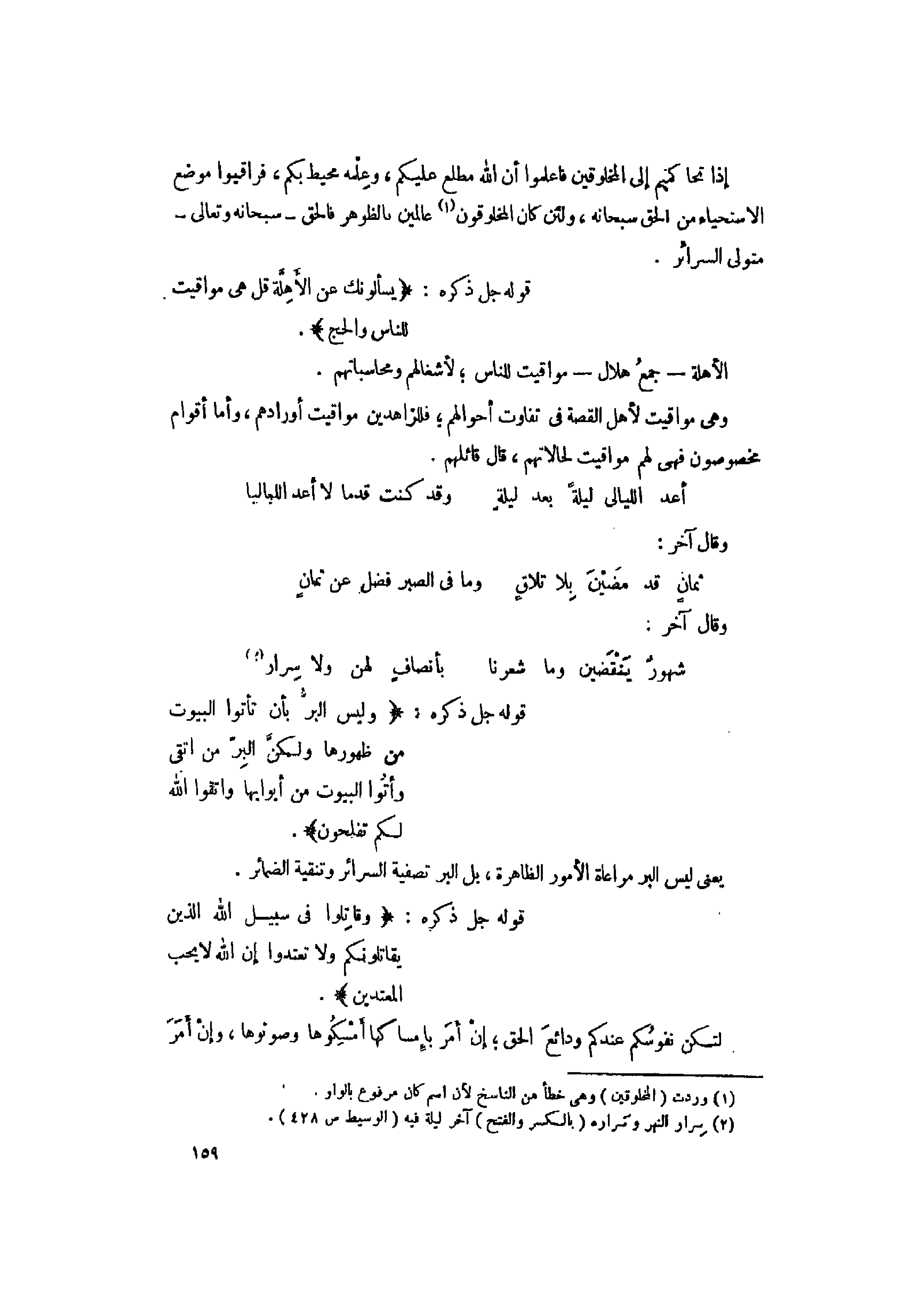 قوله جل ذكره: وَلَيْسَ الْبِرُّ بِأَنْ تَأْتُوا الْبُيُوتَ مِنْ ظُهُورِها وَلكِنَّ الْبِرَّ مَنِ اتَّقى وَأْتُوا الْبُيُوتَ مِنْ أَبْوابِها وَاتَّقُوا اللَّهَ لَعَلَّكُمْ تُفْلِحُونَ.