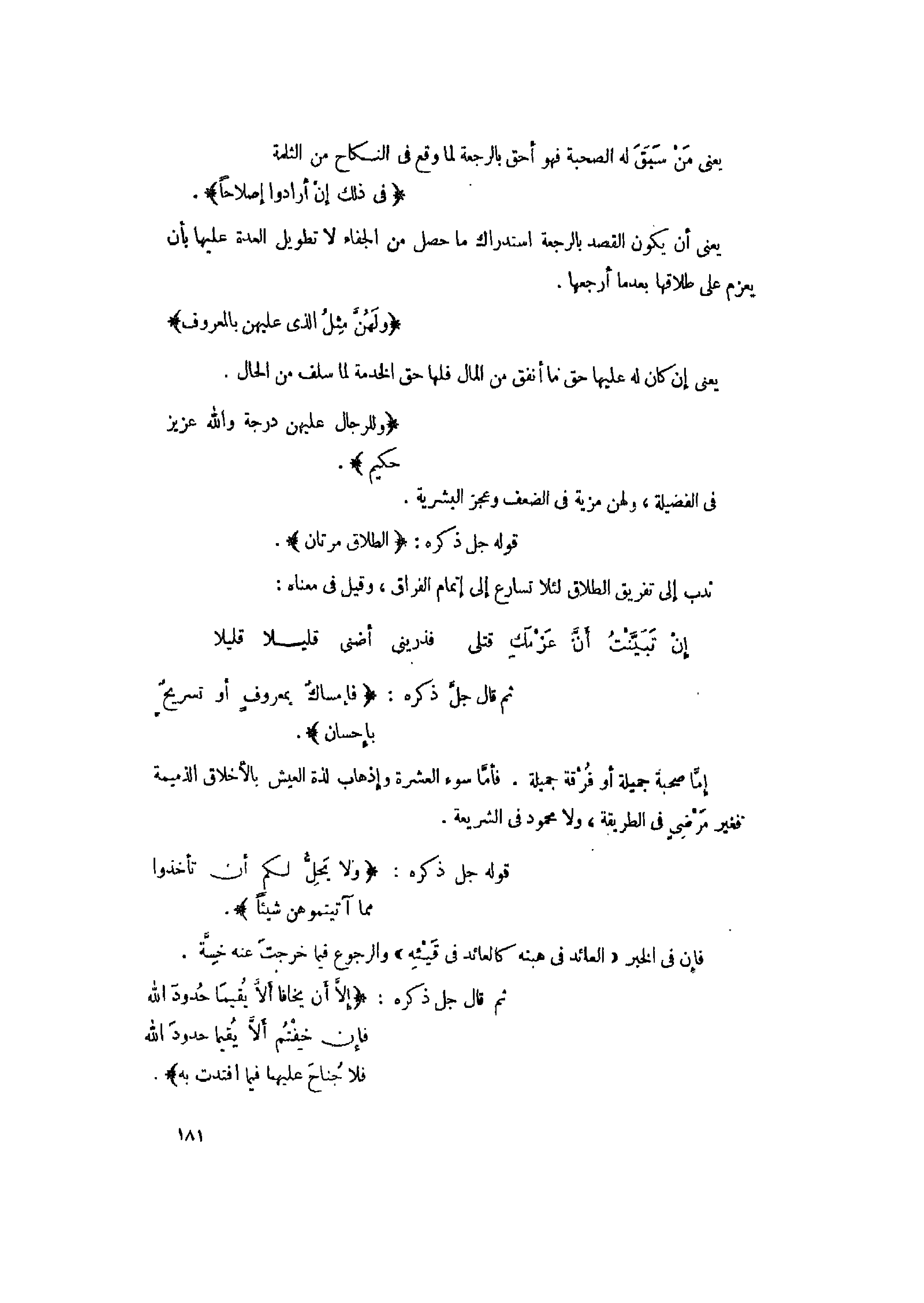 ثم قال جلّ ذكره: فَإِمْساكٌ بِمَعْرُوفٍ أَوْ تَسْرِيحٌ بِإِحْسانٍ.