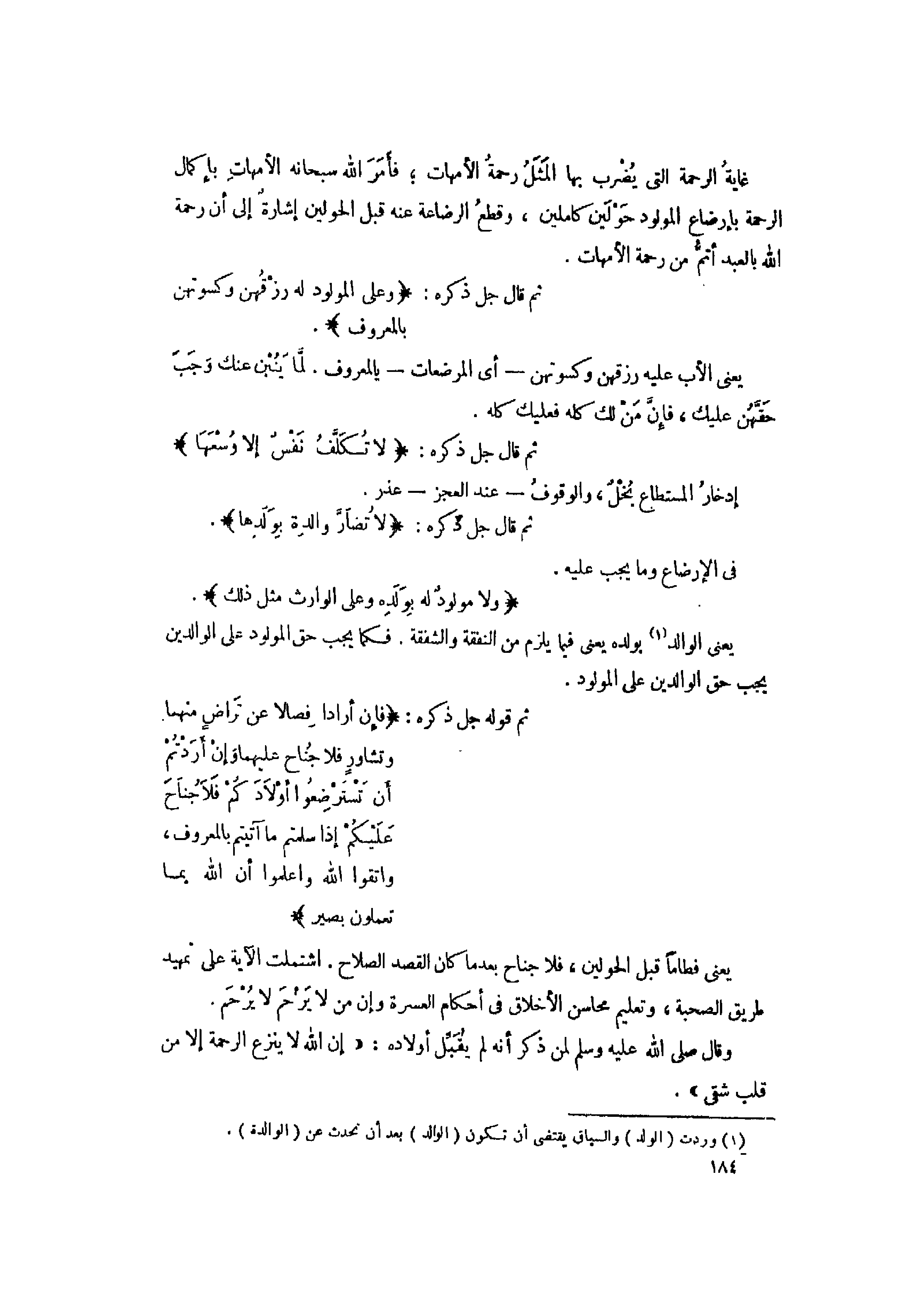 ثم قوله جل ذكره: فَإِنْ أَرادا فِصالًا عَنْ تَراضٍ مِنْهُما وَتَشاوُرٍ فَلا جُناحَ عَلَيْهِما وَإِنْ أَرَدْتُمْ أَنْ تَسْتَرْضِعُوا أَوْلادَكُمْ فَلا جُناحَ عَلَيْكُمْ إِذا سَلَّمْتُمْ ما آتَيْتُمْ بِالْمَعْرُوفِ، وَاتَّقُوا اللَّهَ وَاعْلَمُوا أَنَّ اللَّهَ بِما تَعْمَلُونَ بَصِيرٌ.