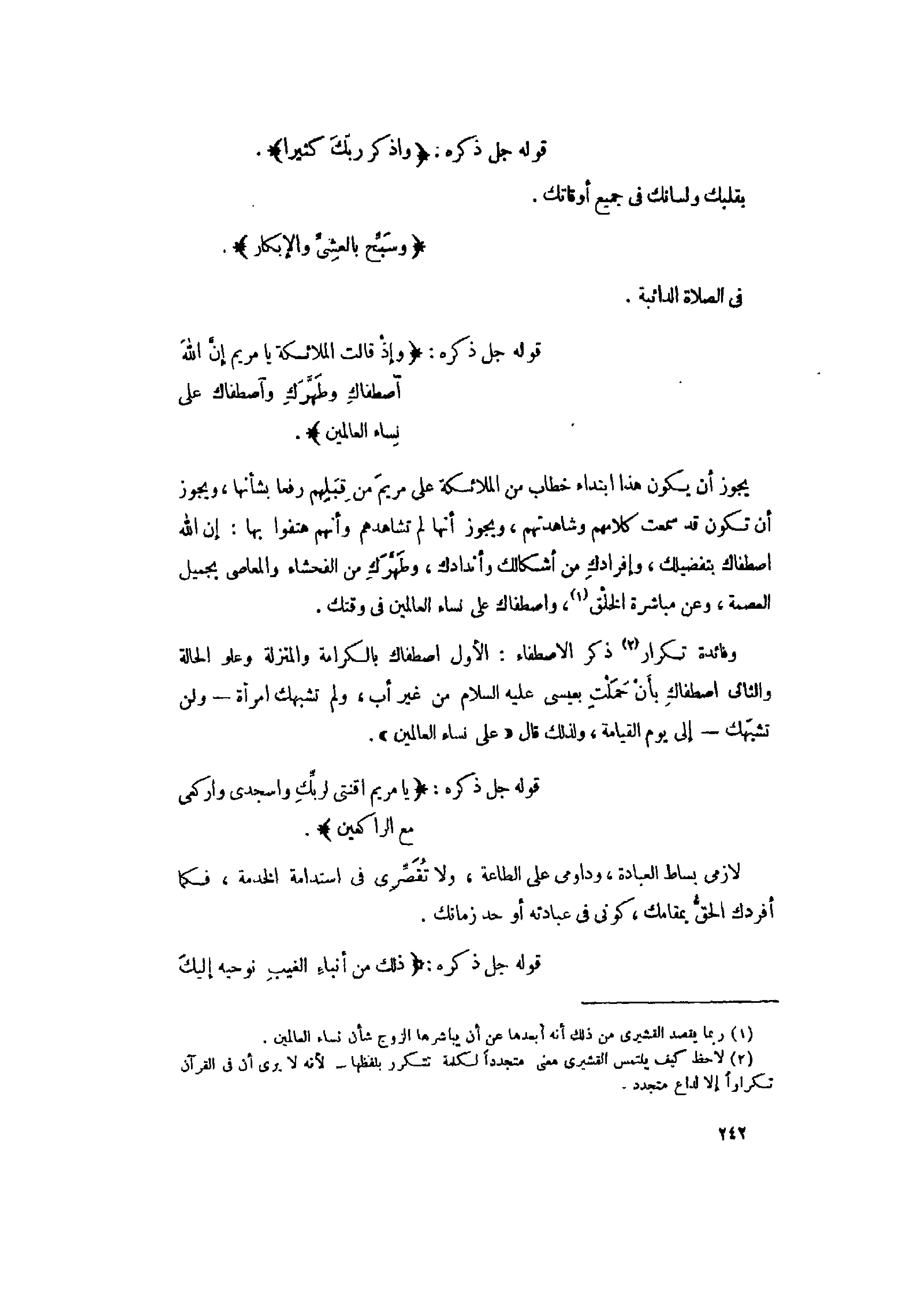 (2) لاحظ كيف يلتمس القشيري معنى متجددا لكلمة تتكرر بلفظها- لأنه لا يرى أن فى القرآن تكرارا إلا لداع متجدد.
