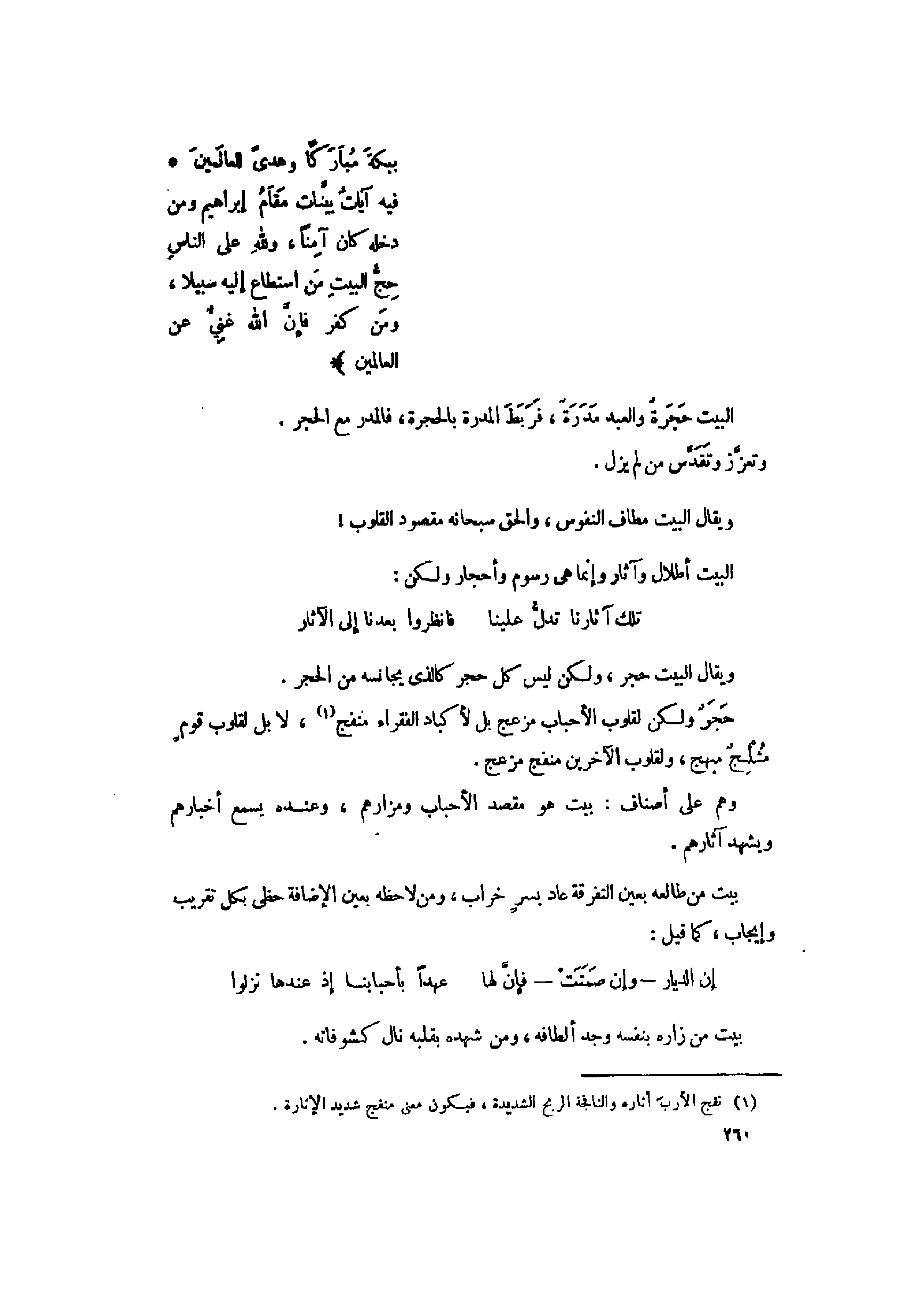 ويقال البيت مطاف النفوس، والحق سبحانه مقصود القلوب! البيت أطلال وآثار وإنما هى رسوم وأحجار ولكن: