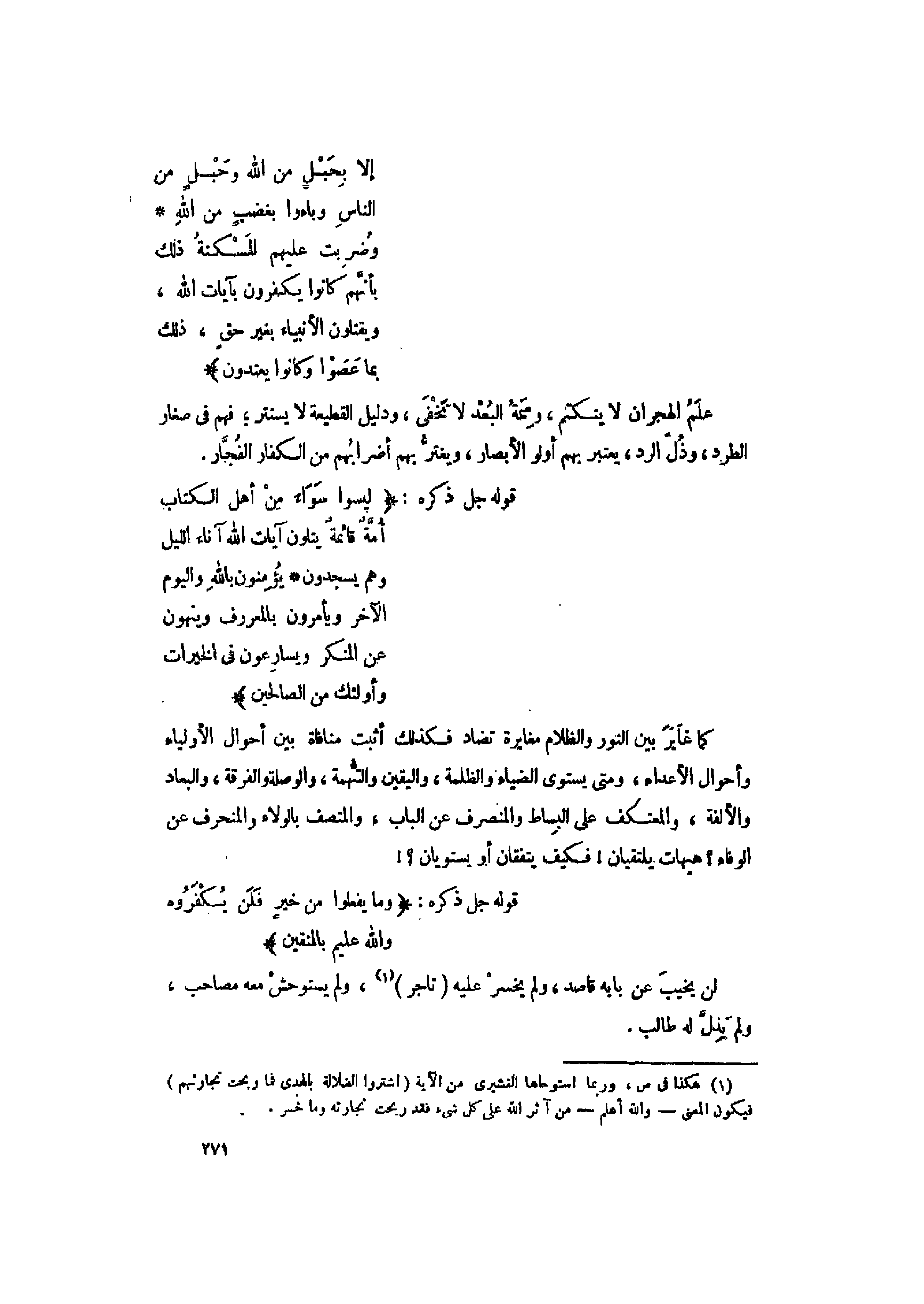 لَيْسُوا سَواءً مِنْ أَهْلِ الْكِتابِ أُمَّةٌ قائِمَةٌ يَتْلُونَ آياتِ اللَّهِ آناءَ اللَّيْلِ وَهُمْ يَسْجُدُونَ (113) يُؤْمِنُونَ بِاللَّهِ وَالْيَوْمِ الْآخِرِ وَيَأْمُرُونَ بِالْمَعْرُوفِ وَيَنْهَوْنَ عَنِ الْمُنْكَرِ وَيُسارِعُونَ فِي الْخَيْراتِ وَأُولئِكَ مِنَ الصَّالِحِينَ (114)
