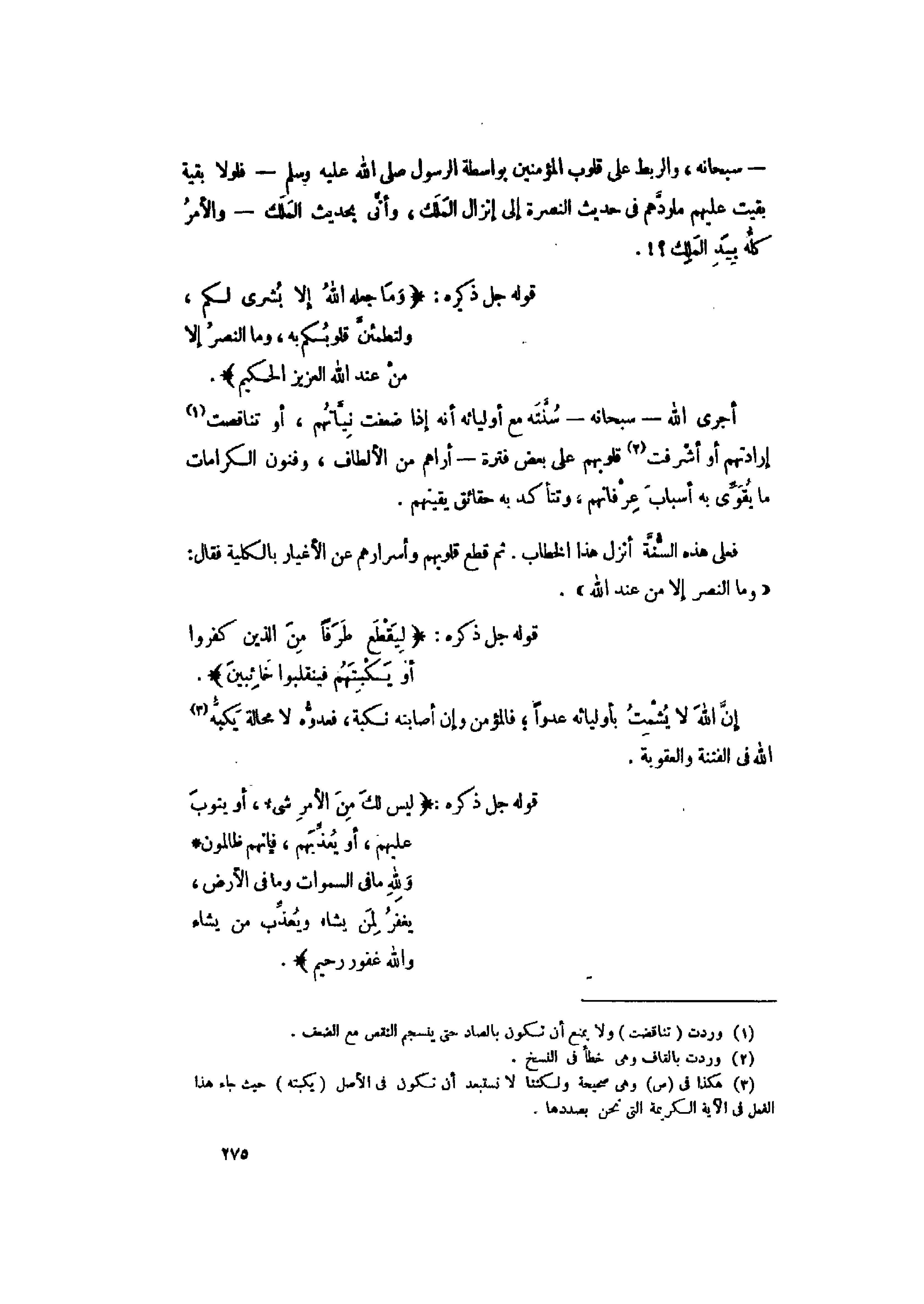 (3) هكذا فى (ص) وهى صحيحة ولكننا لا نستبعد أن تكون فى الأصل (يكبته) حيث جاء هذا الفعل فى الآية الكريمة التي نحن بصددها.