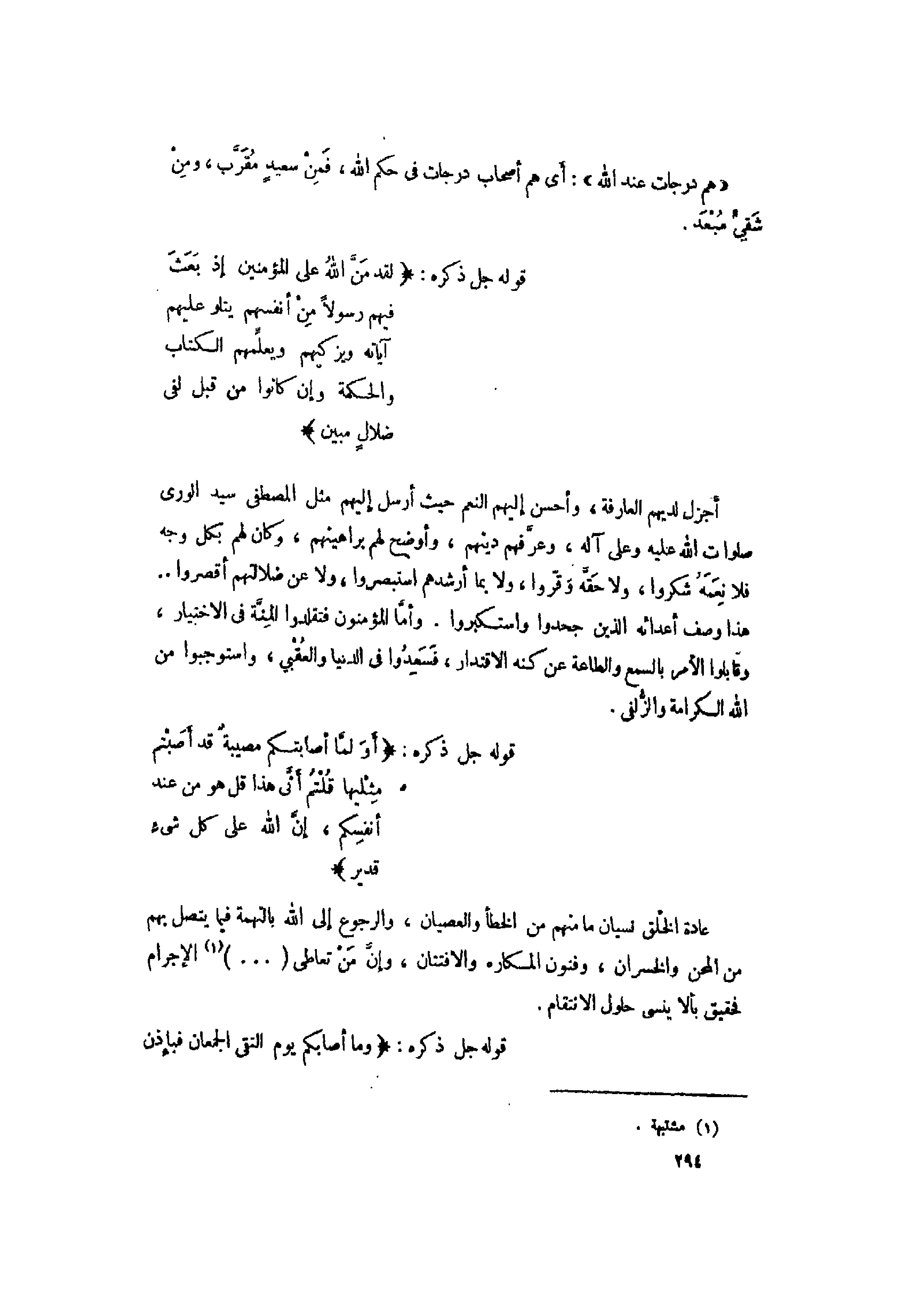 لَقَدْ مَنَّ اللَّهُ عَلَى الْمُؤْمِنِينَ إِذْ بَعَثَ فِيهِمْ رَسُولاً مِنْ أَنْفُسِهِمْ يَتْلُوا عَلَيْهِمْ آياتِهِ وَيُزَكِّيهِمْ وَيُعَلِّمُهُمُ الْكِتابَ وَالْحِكْمَةَ وَإِنْ كانُوا مِنْ قَبْلُ لَفِي ضَلالٍ مُبِينٍ (164)