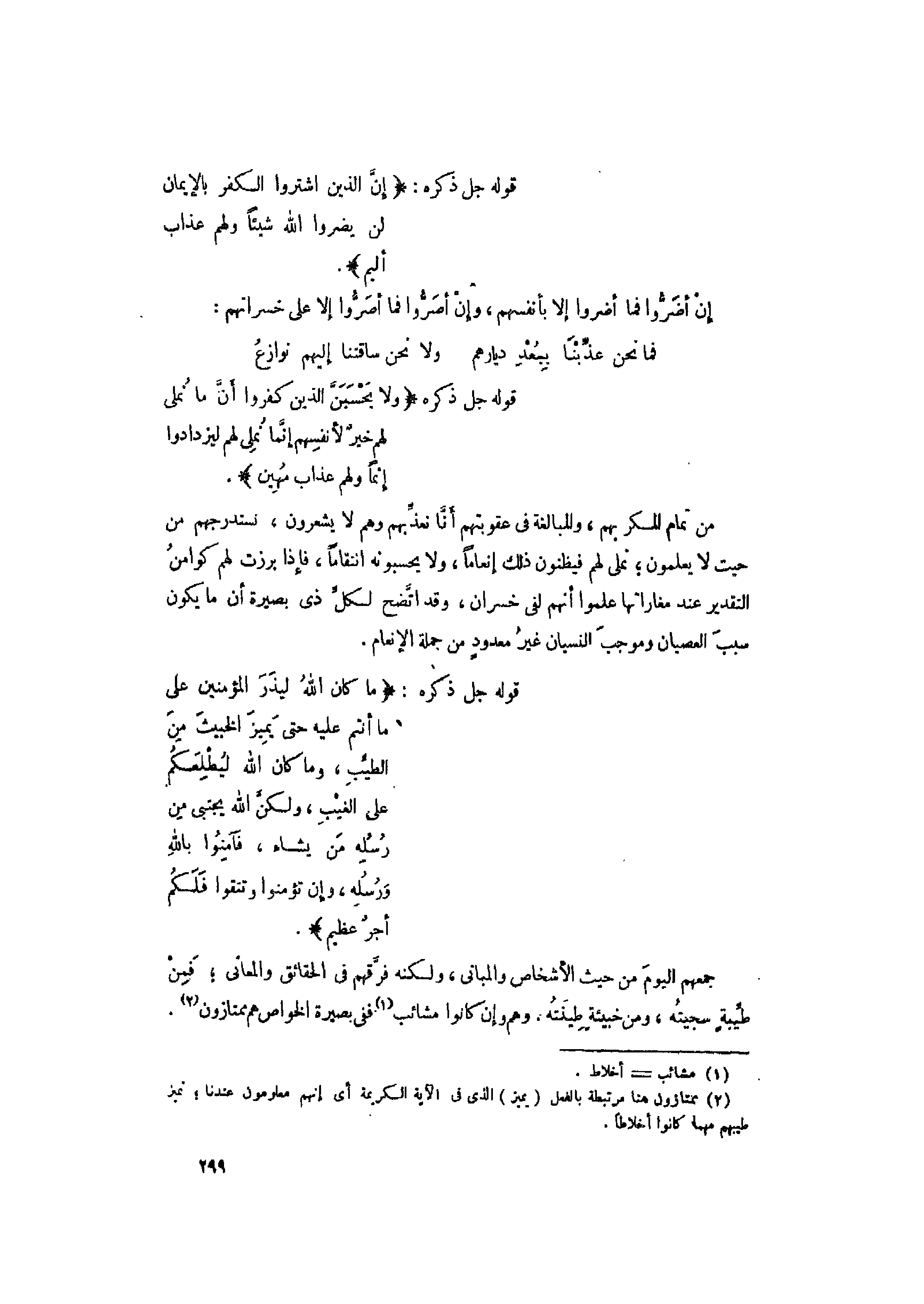جمعهم اليوم من حيث الأشخاص والمبانى، ولكنه فرّقهم فى الحقائق والمعاني فمن طيّبة سجيته، ومن خبيئة طينته. وهم وإن كانوا مشائب «1» ففى بصيرة الخواص هم ممتازون «2» .