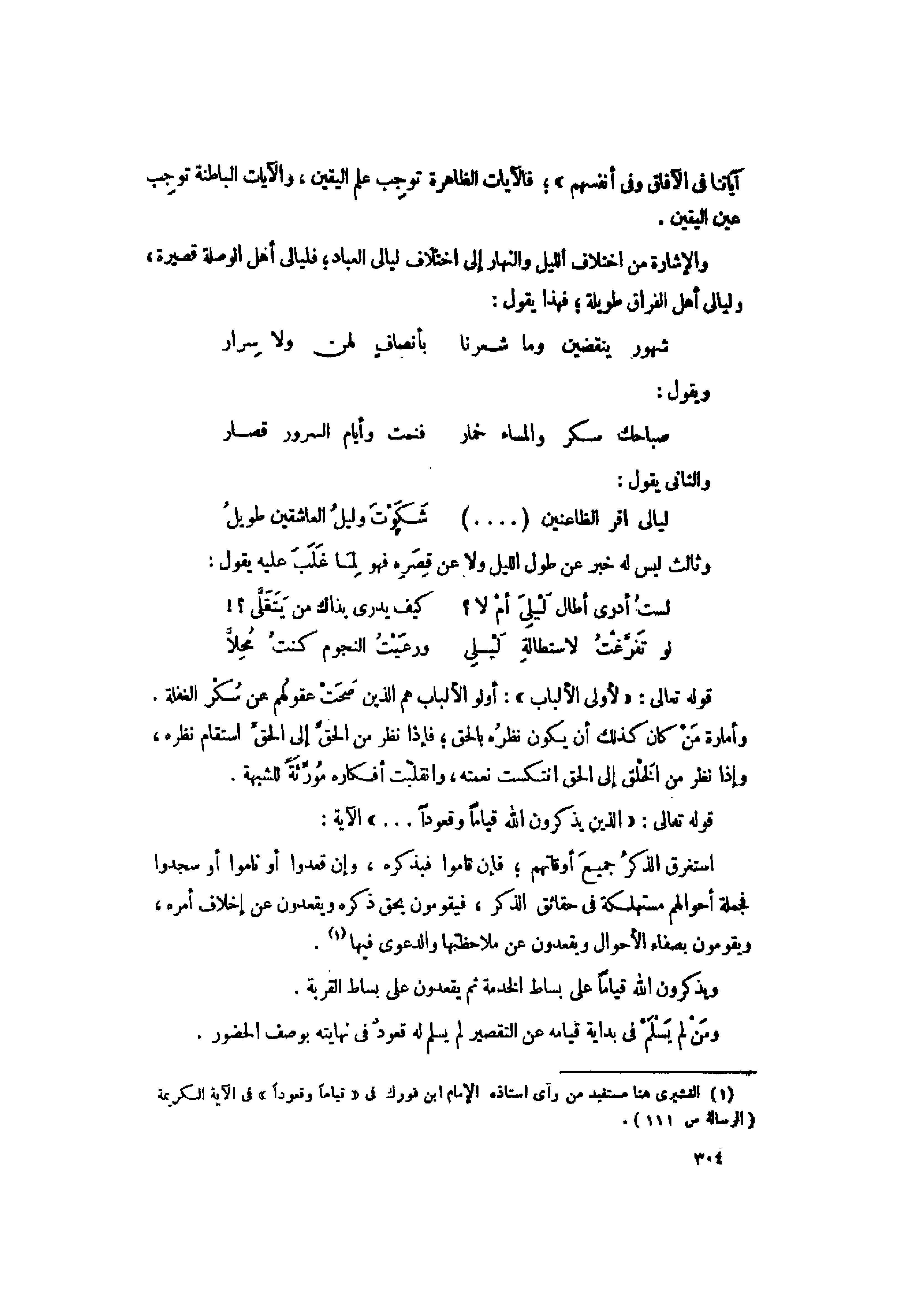 (1) القشيري هنا مستفيد من رآى استاذه الإمام ابن فورك فى «قِياماً وَقُعُوداً» فى الآية الكريمة (الرسالة ص 111) .